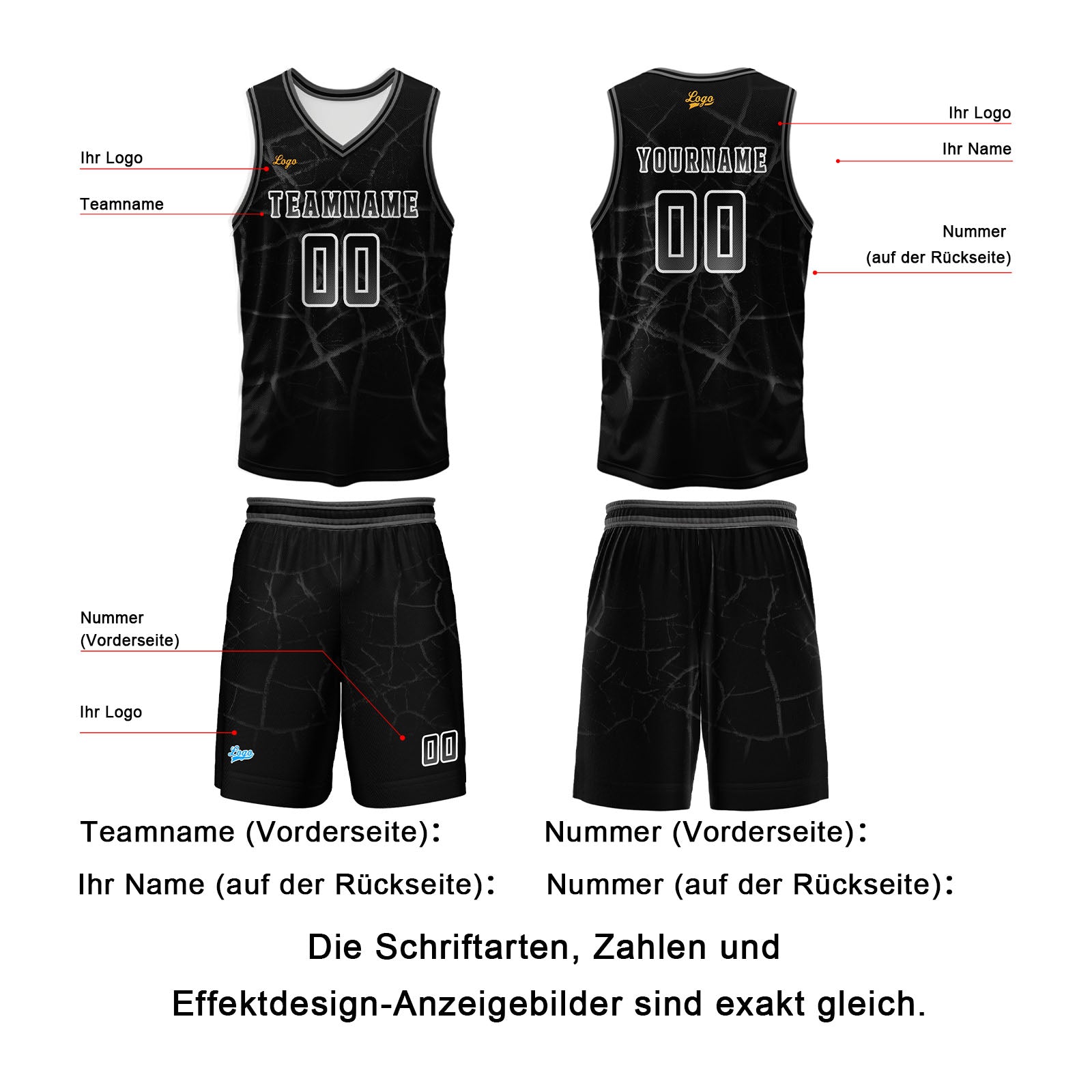 Benutzerdefinierter Schwarze Esche Basketball Jersey Uniform Anzug gedruckt Ihr Logo Name Nummer