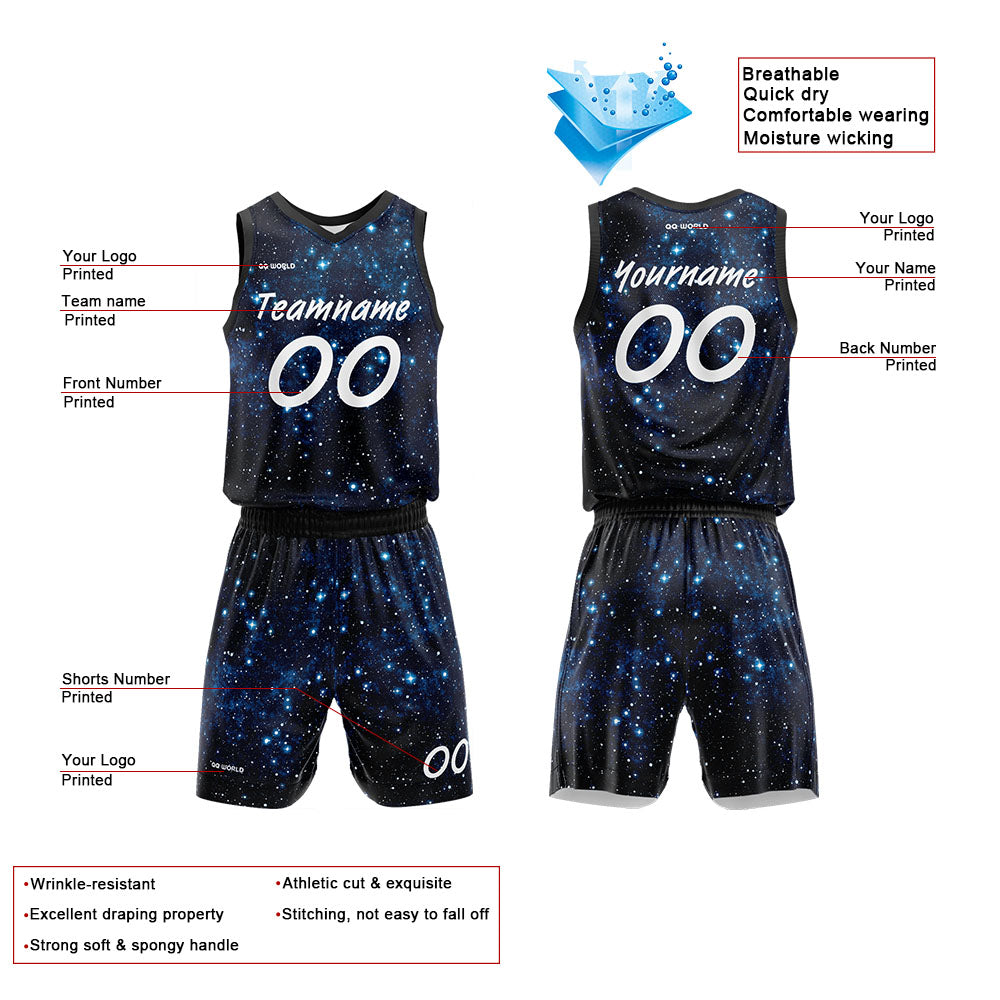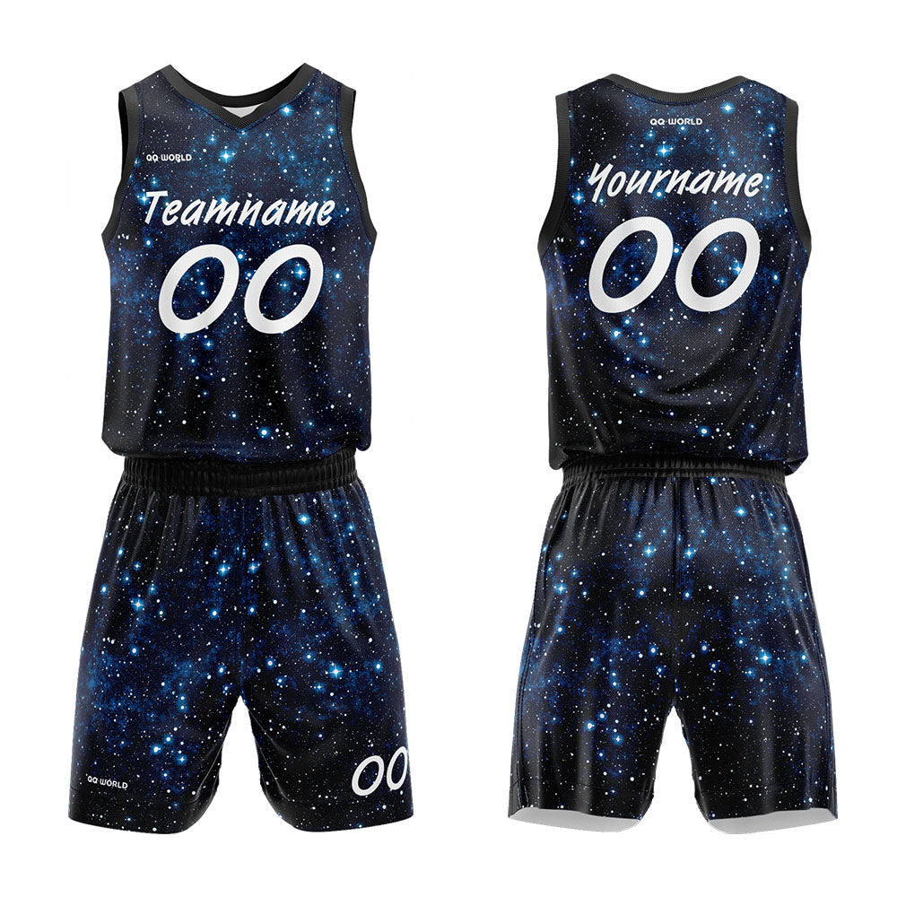 Benutzerdefinierter Sternenklarer Himmel Basketballanzug für Erwachsene und Kinder Personalisiertes Trikot