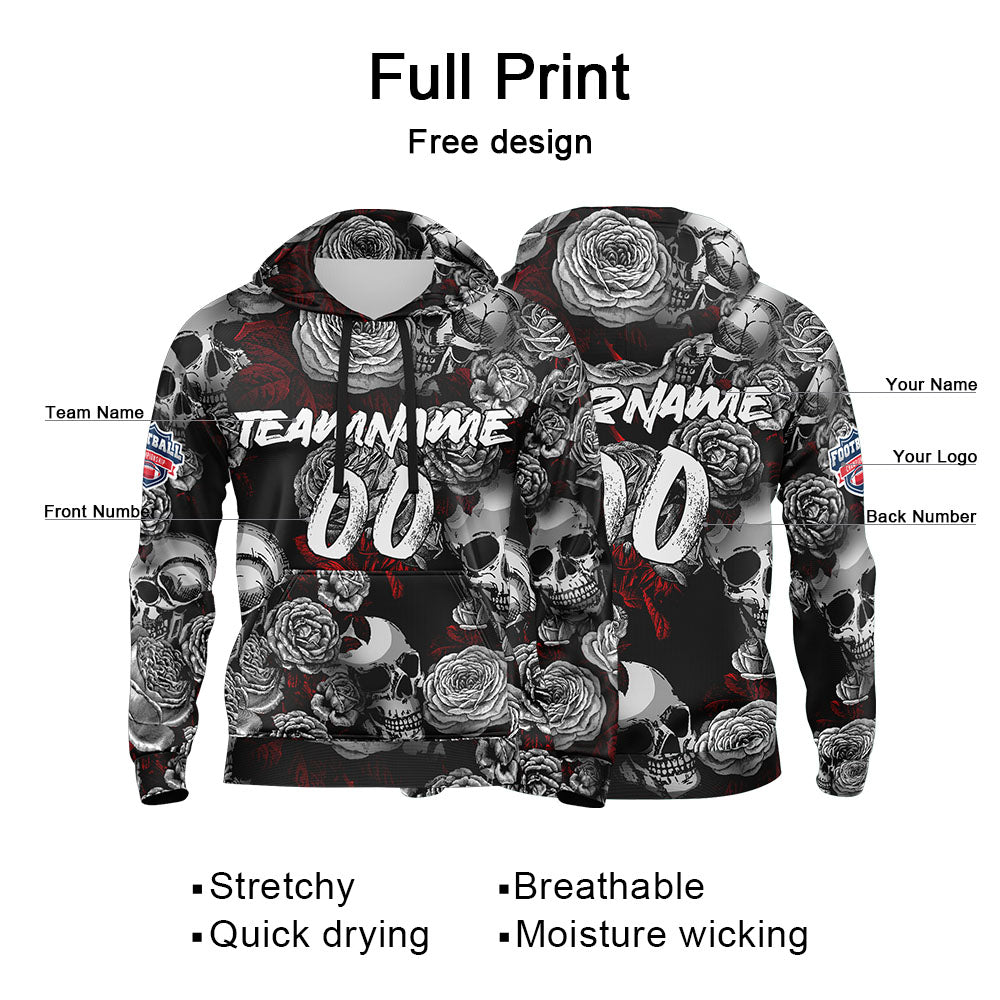 Benutzerdefinierter Sweatshirt-Hoodie für Mann, Frau, Mädchen, Junge. Drucken Sie Ihr Logo, Ihren Namen und Ihre Nummer Grau&Rot