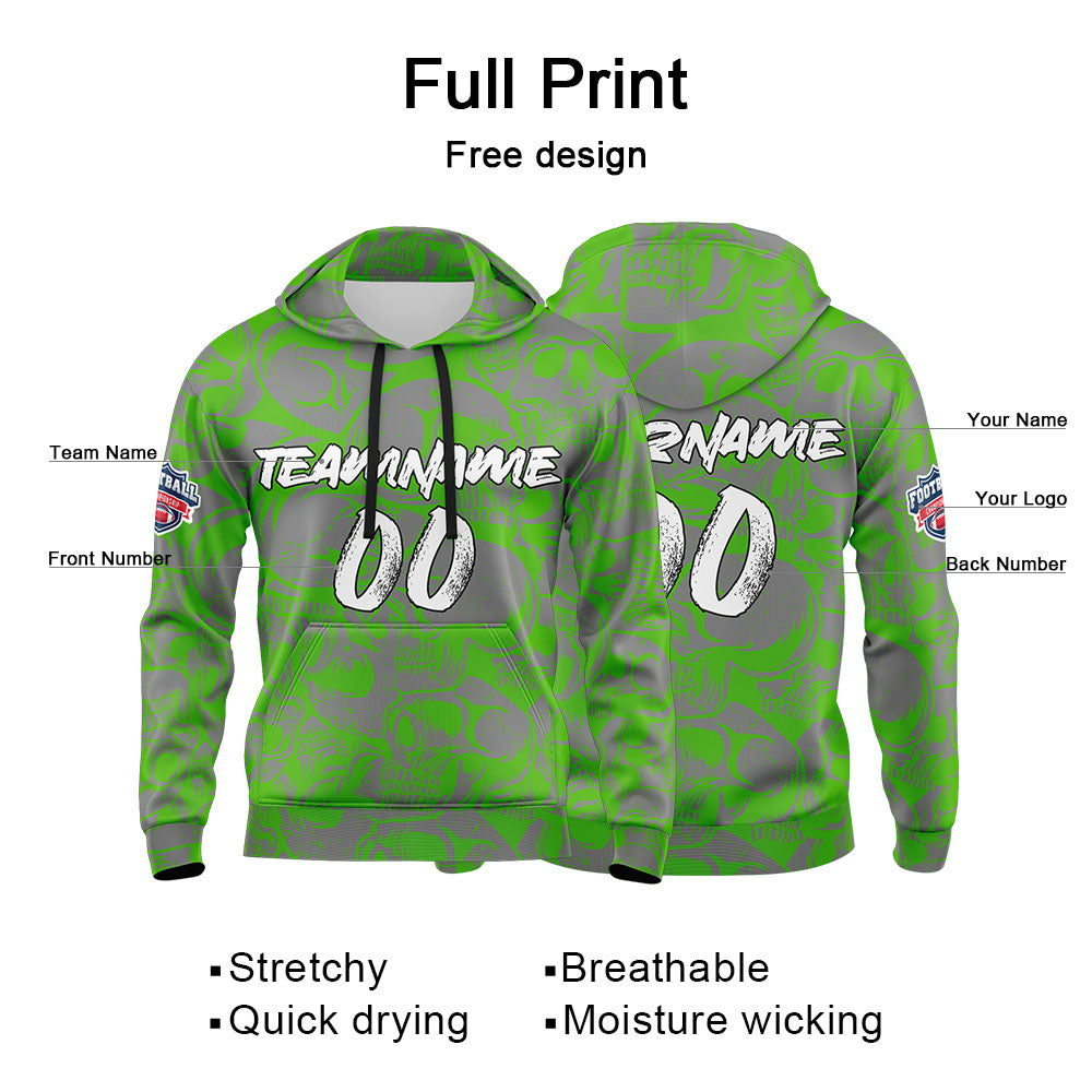 Benutzerdefinierter Sweatshirt-Hoodie für Mann, Frau, Mädchen, Junge. Drucken Sie Ihr Logo, Ihren Namen und Ihre Nummer Grün&Grau