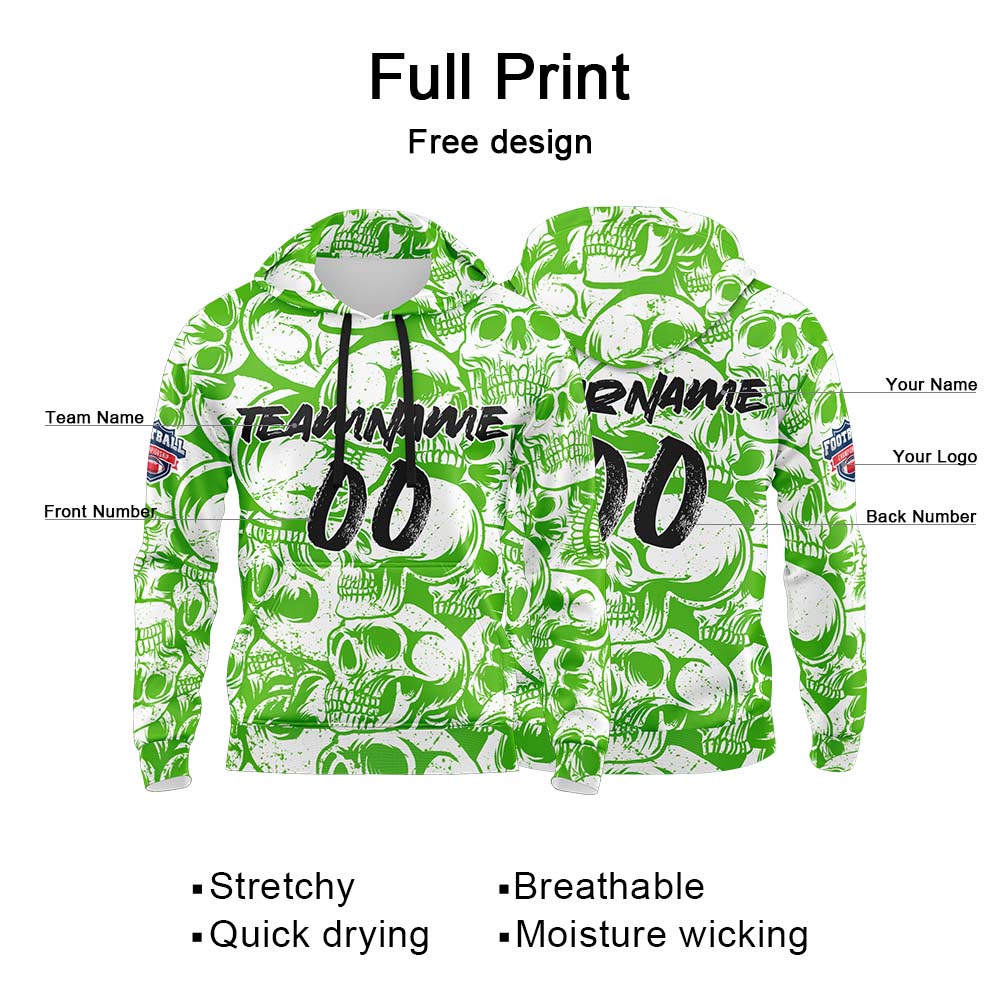 Benutzerdefinierter Sweatshirt-Hoodie für Mann, Frau, Mädchen, Junge. Drucken Sie Ihr Logo, Ihren Namen und Ihre Nummer Grün&Weiß