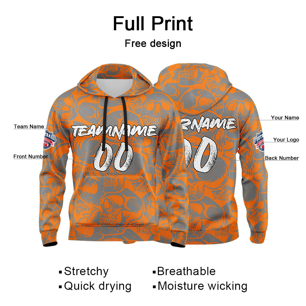 Benutzerdefinierter Sweatshirt-Hoodie für Mann, Frau, Mädchen, Junge. Drucken Sie Ihr Logo, Ihren Namen und Ihre Nummer Orange&Grau