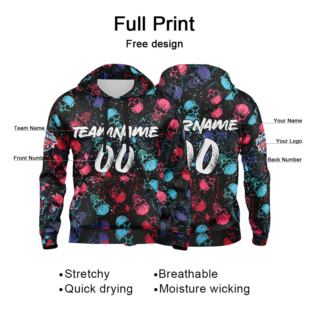Benutzerdefinierter Sweatshirt-Hoodie für Mann, Frau, Mädchen, Junge. Drucken Sie Ihr Logo, Ihren Namen und Ihre Nummer Rot&Blau