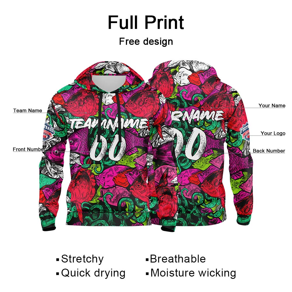 Benutzerdefinierter Sweatshirt-Hoodie für Mann, Frau, Mädchen, Junge. Drucken Sie Ihr Logo, Ihren Namen und Ihre Nummer Rot&Grün