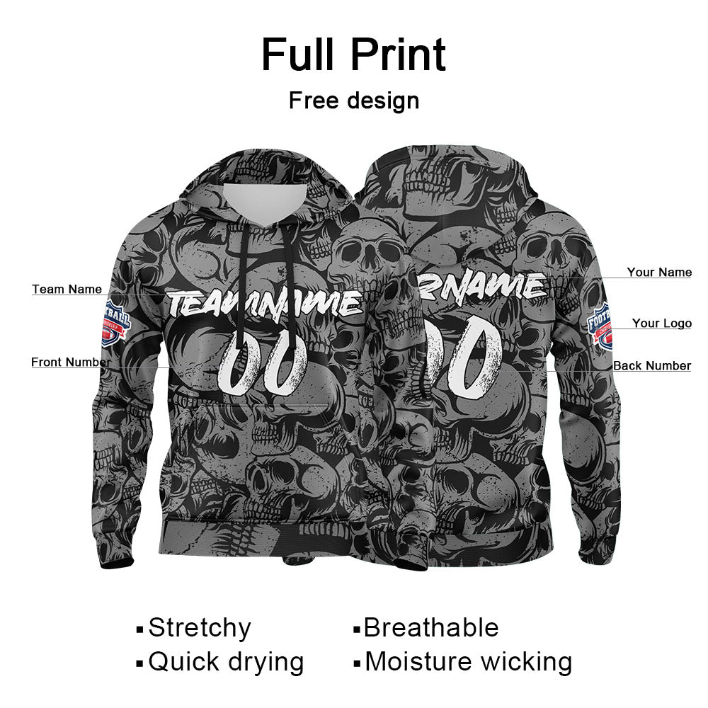 Benutzerdefinierter Sweatshirt-Hoodie für Mann, Frau, Mädchen, Junge. Drucken Sie Ihr Logo, Ihren Namen und Ihre Nummer Schwarz&Grau