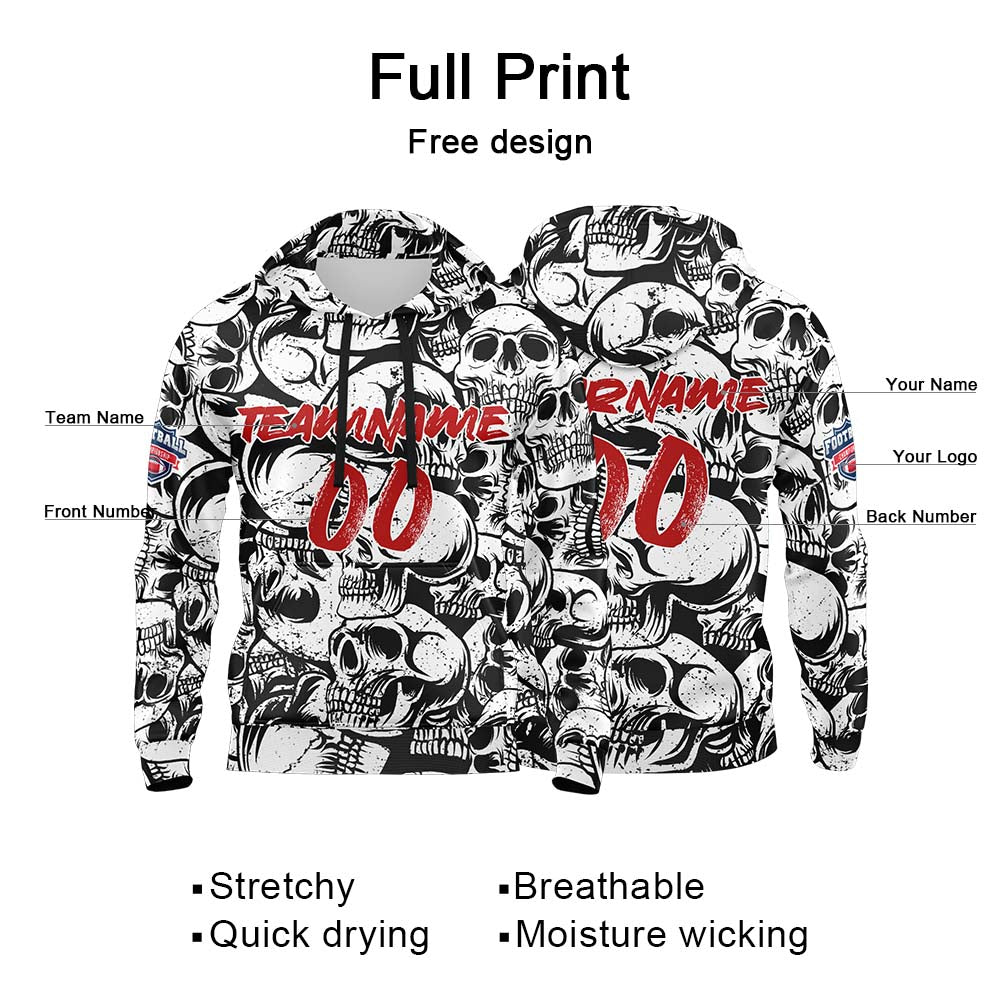 Benutzerdefinierter Sweatshirt-Hoodie für Mann, Frau, Mädchen, Junge. Drucken Sie Ihr Logo, Ihren Namen und Ihre Nummer Schwarz&Weiß