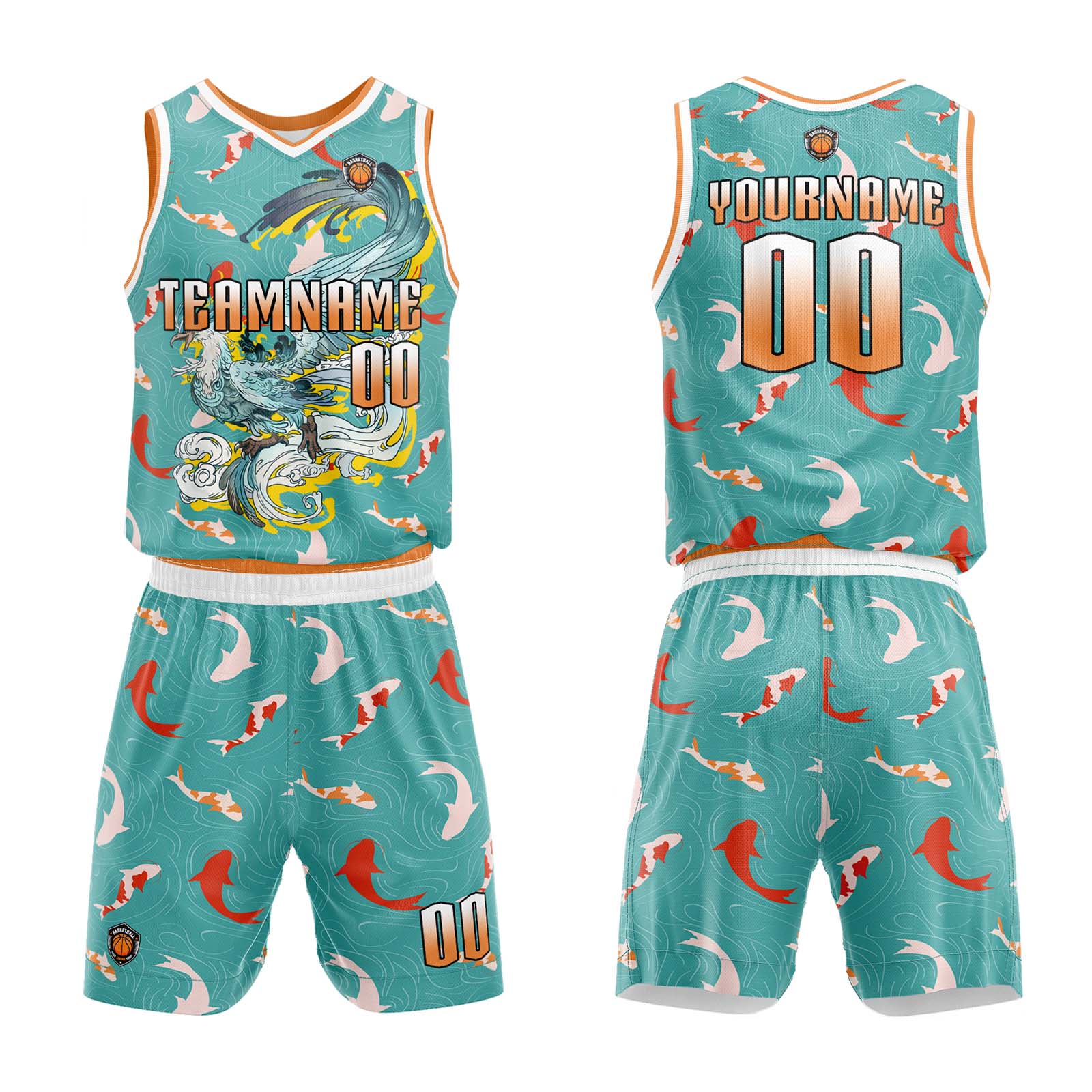 Benutzerdefinierter Teal Orange Basketball Jersey Uniform Anzug gedruckt Ihr Logo Name Nummer