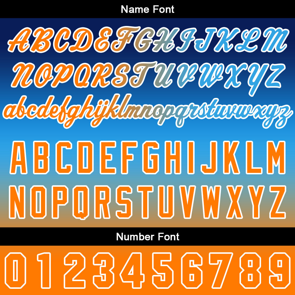 Benutzerdefinierter Verlauf Hoodie für Mann, Frau, Mädchen, Junge. Drucken Sie Ihr Logo, Ihren Namen und Ihre Nummer Blau Orange