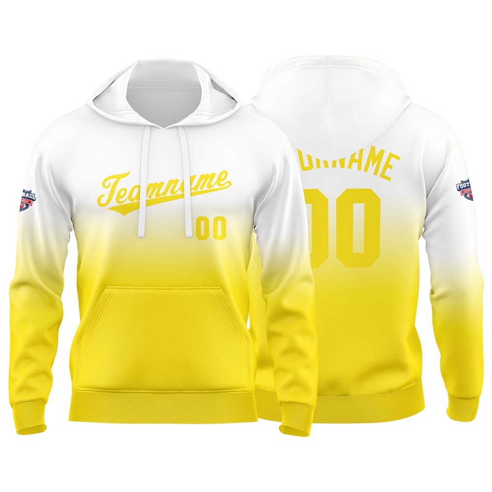Benutzerdefinierter Verlauf Hoodie für Mann, Frau, Mädchen, Junge. Drucken Sie Ihr Logo, Ihren Namen und Ihre Nummer Gelb