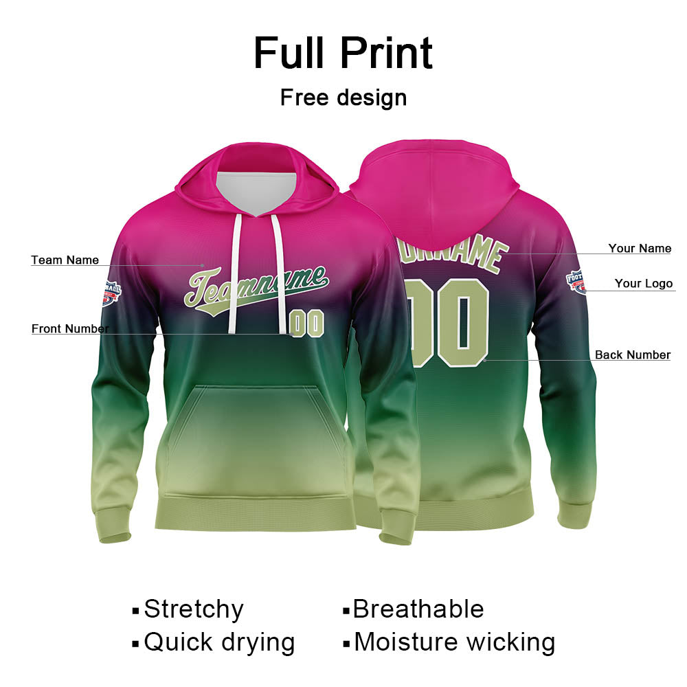 Benutzerdefinierter Verlauf Hoodie für Mann, Frau, Mädchen, Junge. Drucken Sie Ihr Logo, Ihren Namen und Ihre Nummer Lila Grün