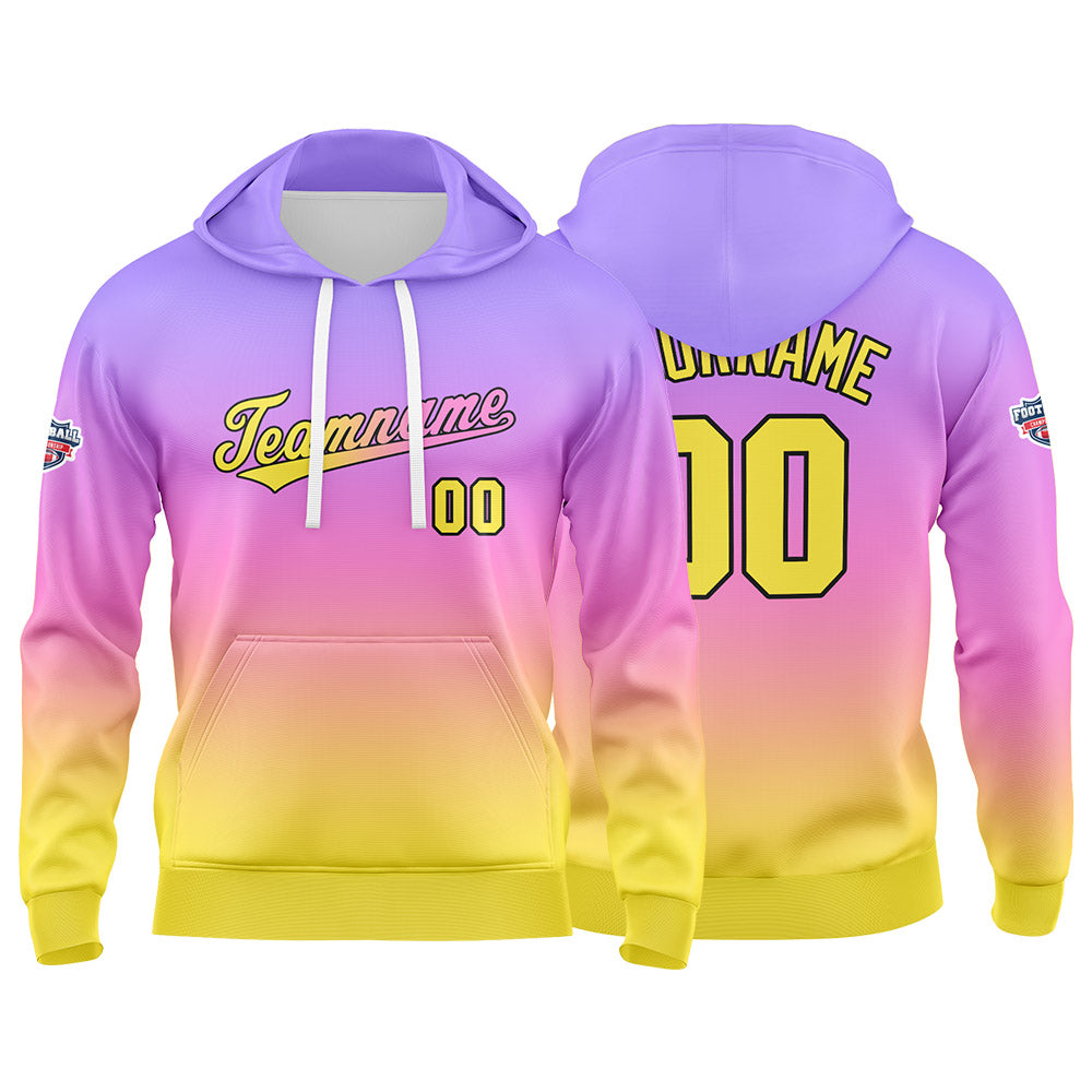 Benutzerdefinierter Verlauf Hoodie für Mann, Frau, Mädchen, Junge. Drucken Sie Ihr Logo, Ihren Namen und Ihre Nummer Lila Rosa Gelb