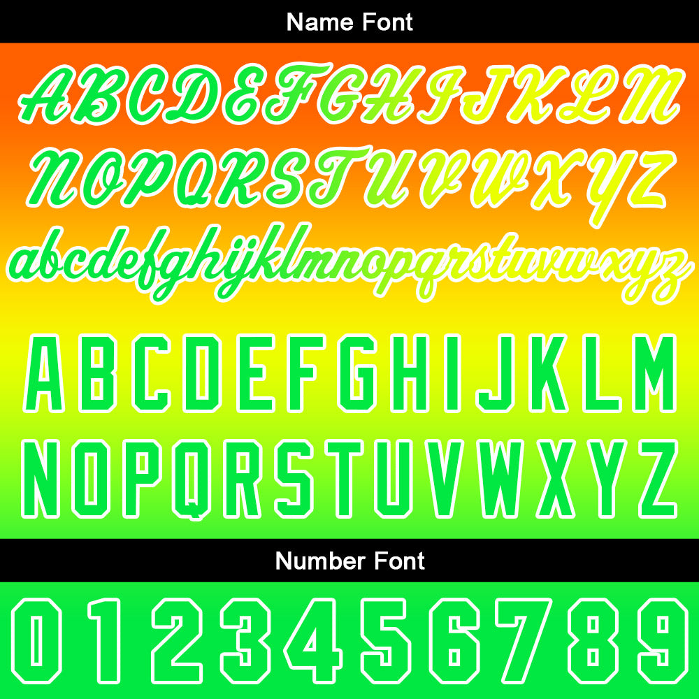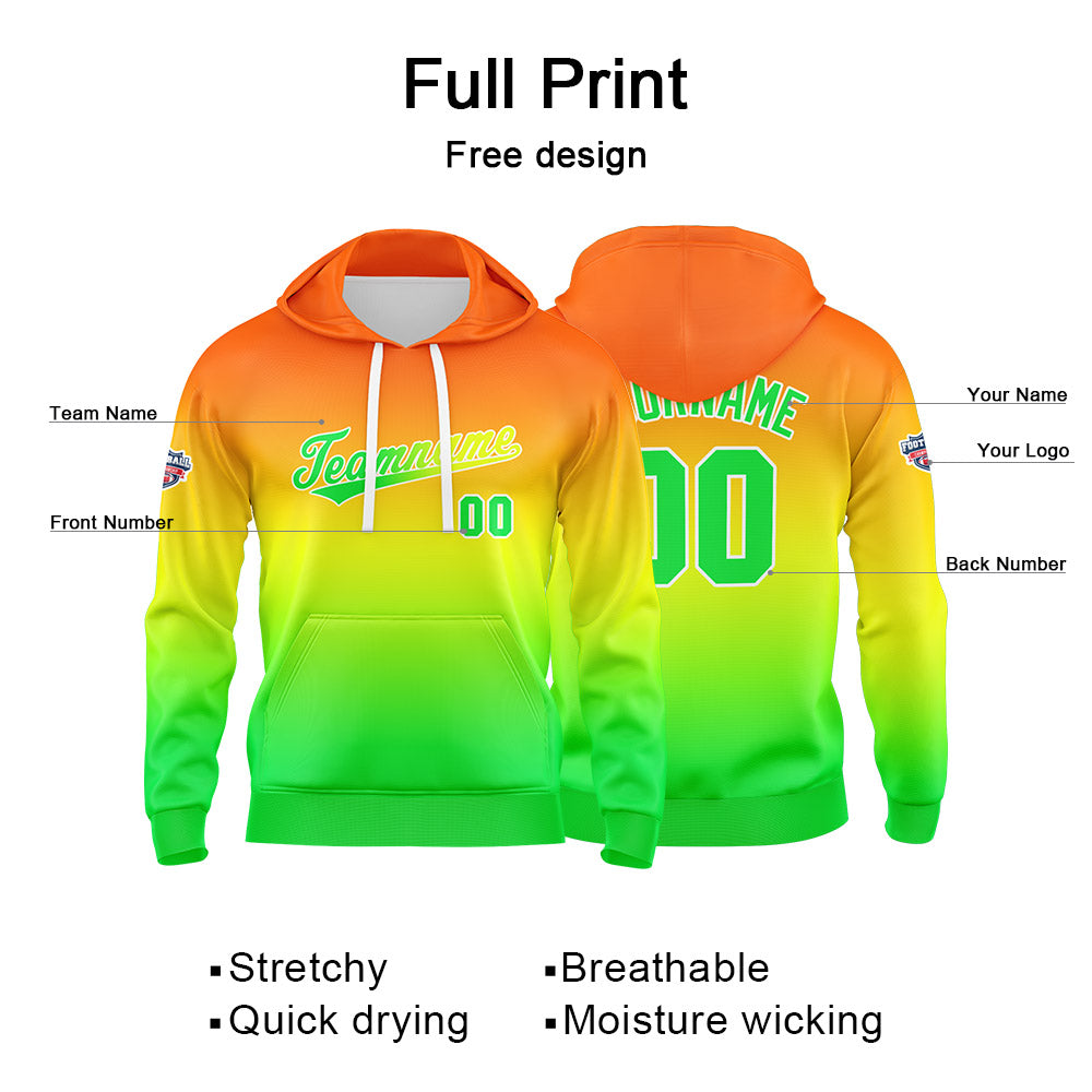 Benutzerdefinierter Verlauf Hoodie für Mann, Frau, Mädchen, Junge. Drucken Sie Ihr Logo, Ihren Namen und Ihre Nummer Orange Gelb Grün