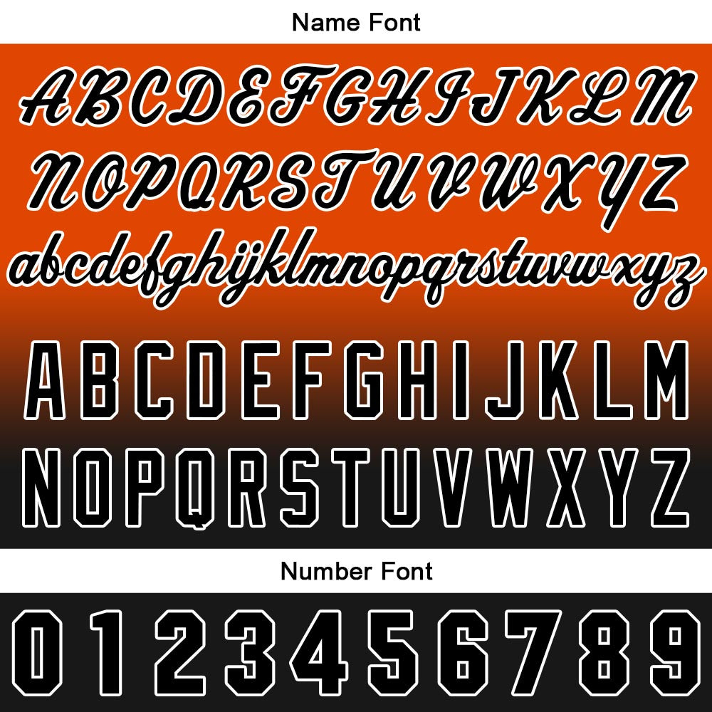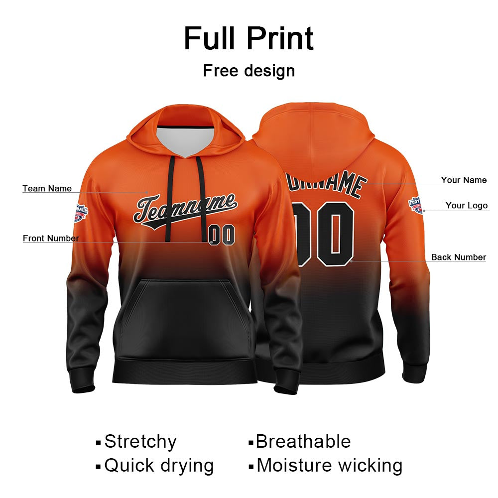 Benutzerdefinierter Verlauf Hoodie für Mann, Frau, Mädchen, Junge. Drucken Sie Ihr Logo, Ihren Namen und Ihre Nummer Orange Schwarz