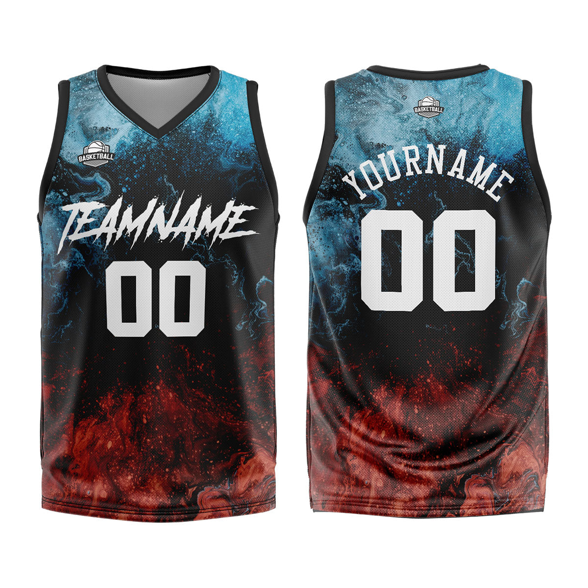 Benutzerdefinierter Wasser und Feuer Basketball Jersey Uniform Anzug gedruckt Ihr Logo Name Nummer