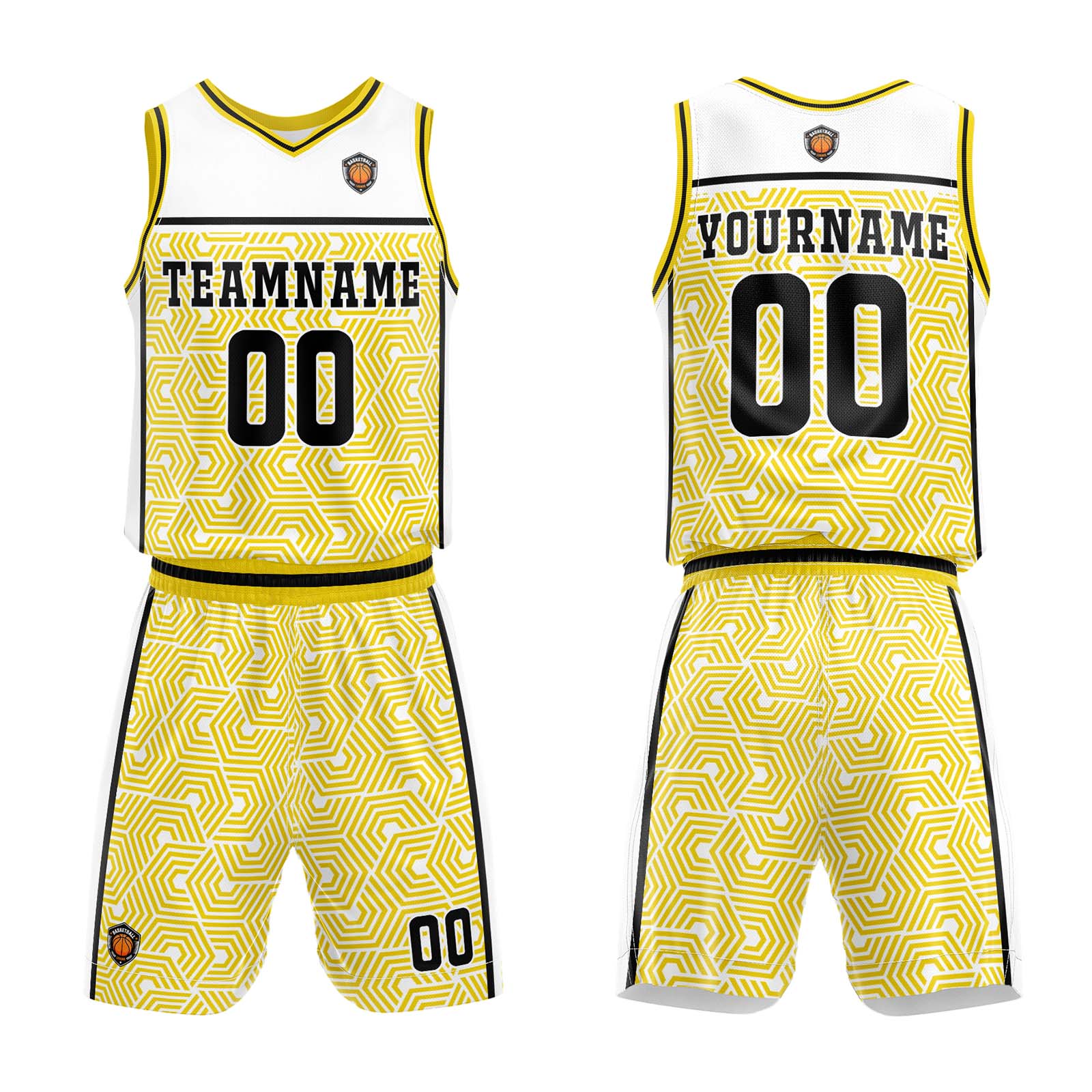 Benutzerdefinierter Weiß Gelb Basketball Jersey Uniform Anzug gedruckt Ihr Logo Name Nummer