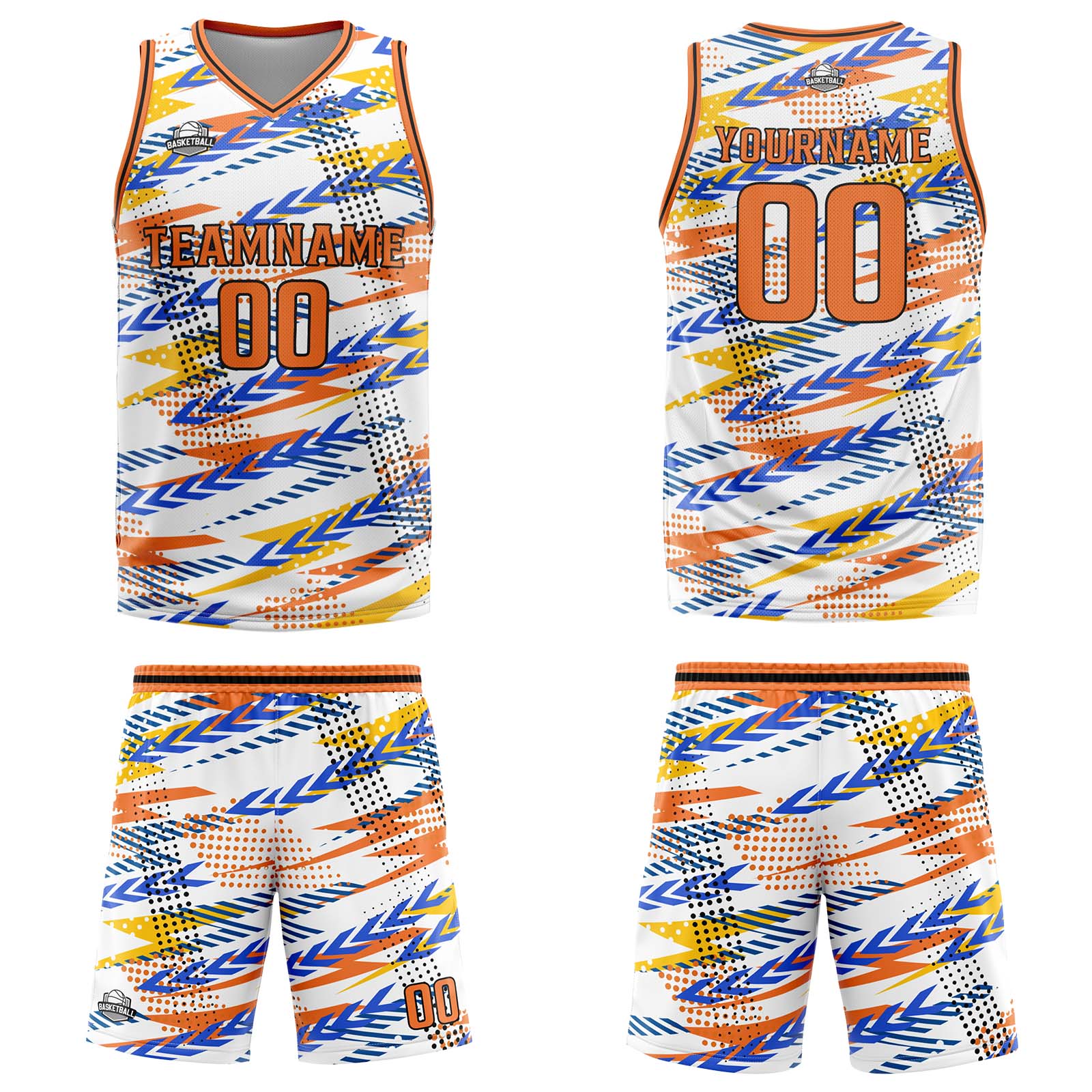 Benutzerdefinierter Weiß Orange Basketball Jersey Uniform Anzug gedruckt Ihr Logo Name Nummer