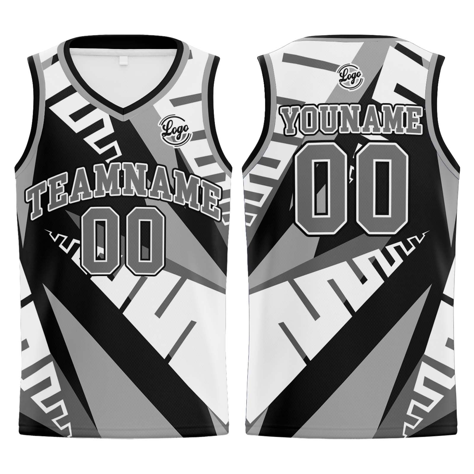 Benutzerdefinierter Weiß Schwarz Grau Basketball Jersey Uniform Anzug gedruckt Ihr Logo Name Nummer