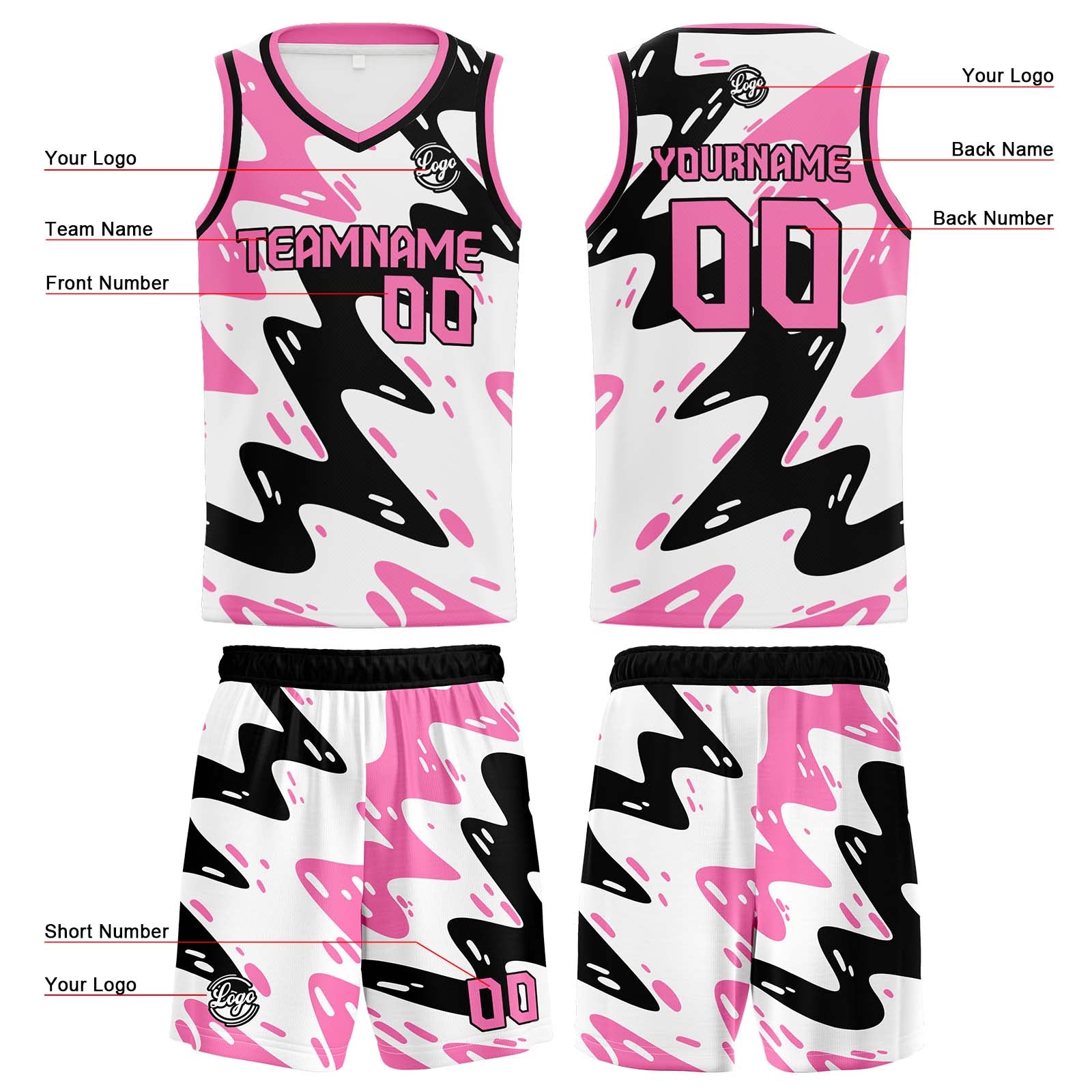 Benutzerdefinierter Weiß Schwarz Rosa Basketball Jersey Uniform Anzug gedruckt Ihr Logo Name Nummer