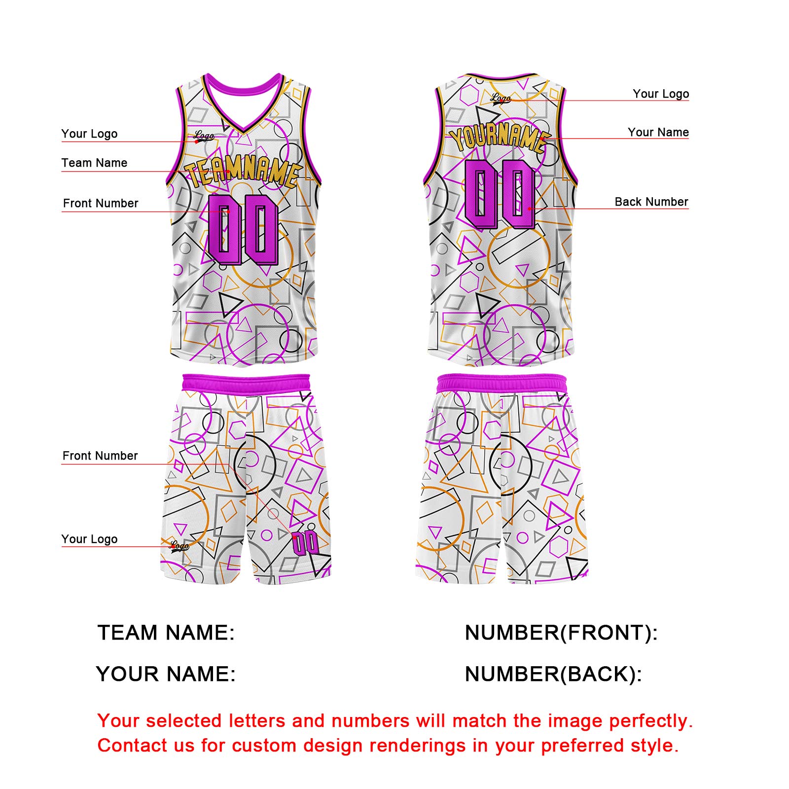 Benutzerdefinierter Weiß Rosa Basketball Jersey Uniform Anzug gedruckt Ihr Logo Name Nummer