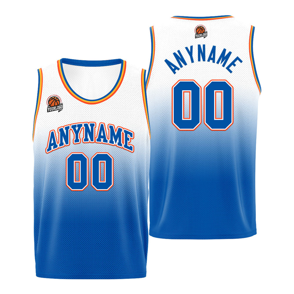 Benutzerdefinierte Basketball Jersey personalisiert genäht Name&Number&Logo Orange&Blau