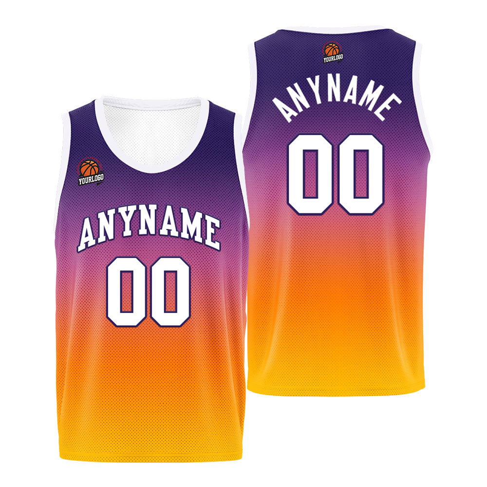 Benutzerdefinierte Basketball Jersey personalisiert genäht Name&Number&Logo Lila&Orange