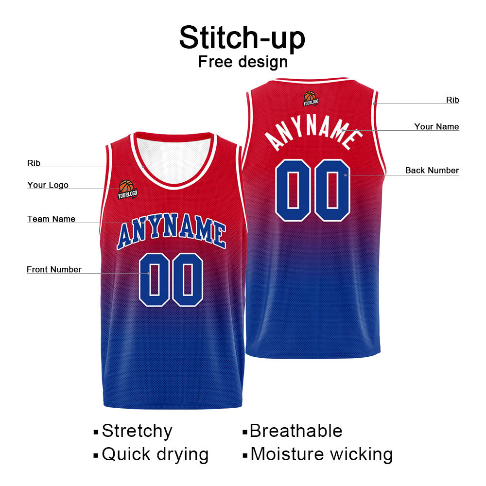 Benutzerdefinierte Basketball Jersey personalisiert genäht Name&Number&Logo Rot&Royal