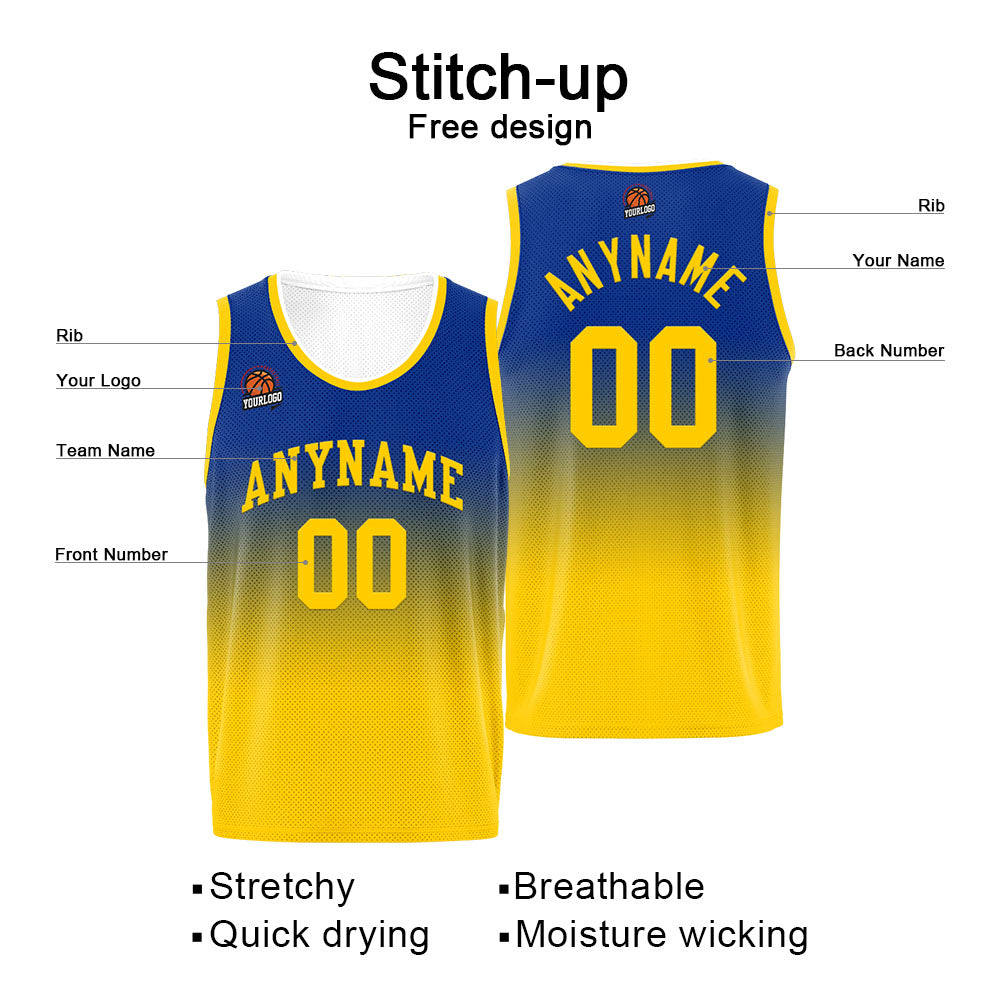 Benutzerdefinierte Basketball Jersey personalisiert genäht Name&Number&Logo Royal&Gelb
