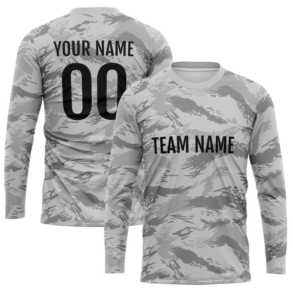Kundenspezifisches Basketball Fußball Fußball Schießen langes T-Shirt für Erwachsene und Kinder Camouflage Grau
