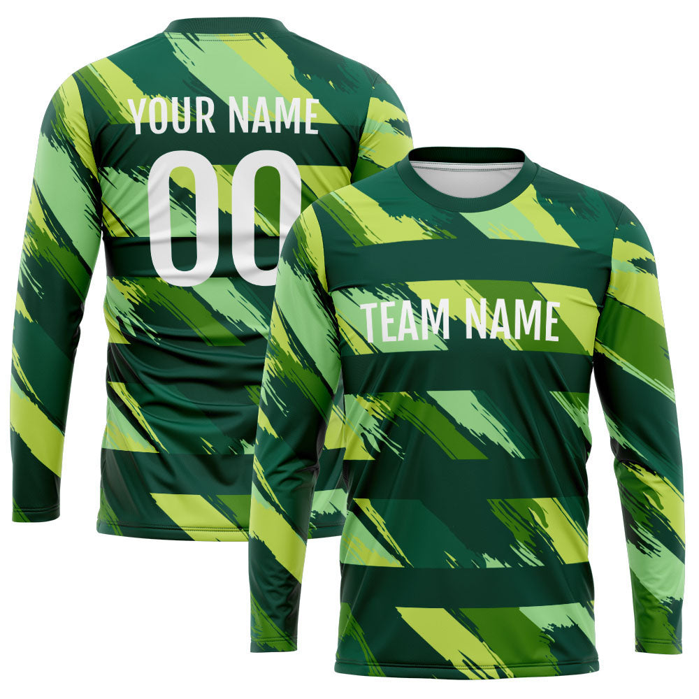 Kundenspezifisches Basketball Fußball Fußball Schießen langes T-Shirt für Erwachsene und Kinder Horizontaler Balken-Grün