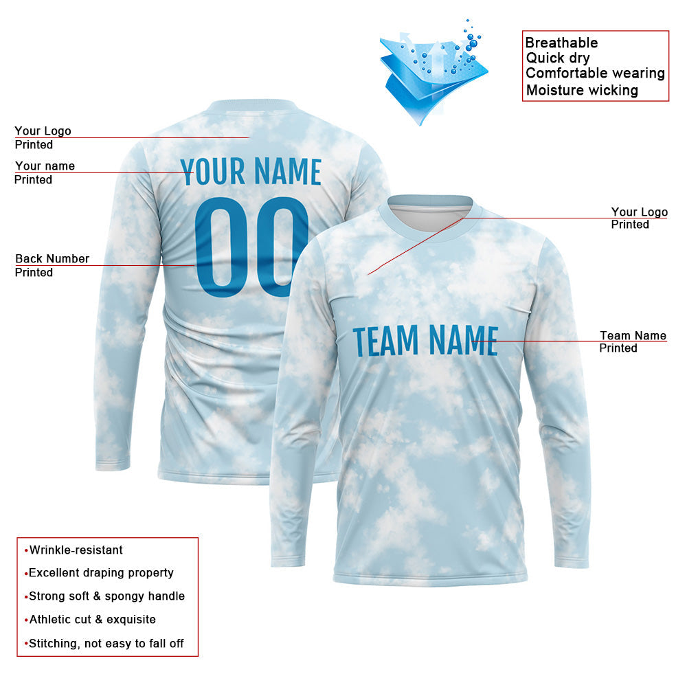 Kundenspezifisches Basketball Fußball Fußball Schießen langes T-Shirt für Erwachsene und Kinder Licht Blau
