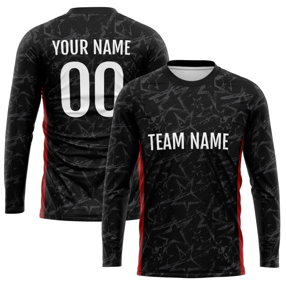 Kundenspezifisches Basketball Fußball Fußball Schießen langes T-Shirt für Erwachsene und Kinder Stern-Schwarz