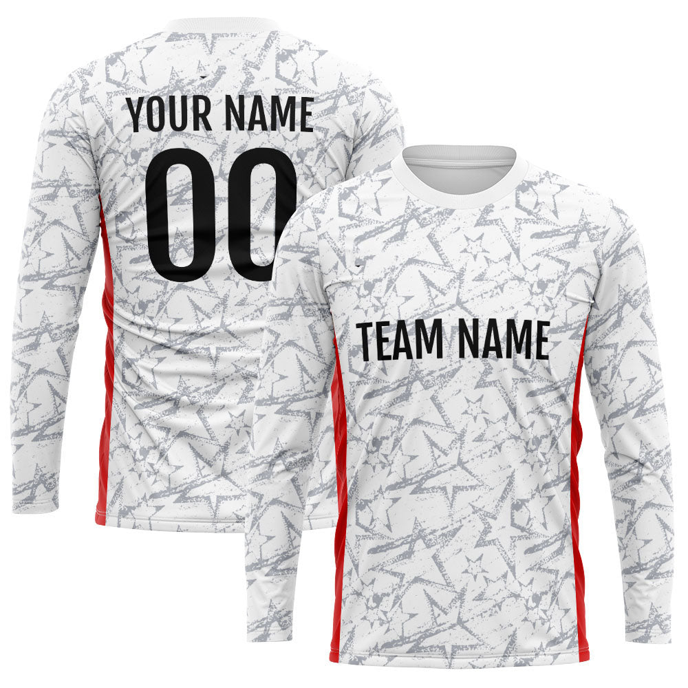 Kundenspezifisches Basketball Fußball Fußball Schießen langes T-Shirt für Erwachsene und Kinder Stern-Weiß