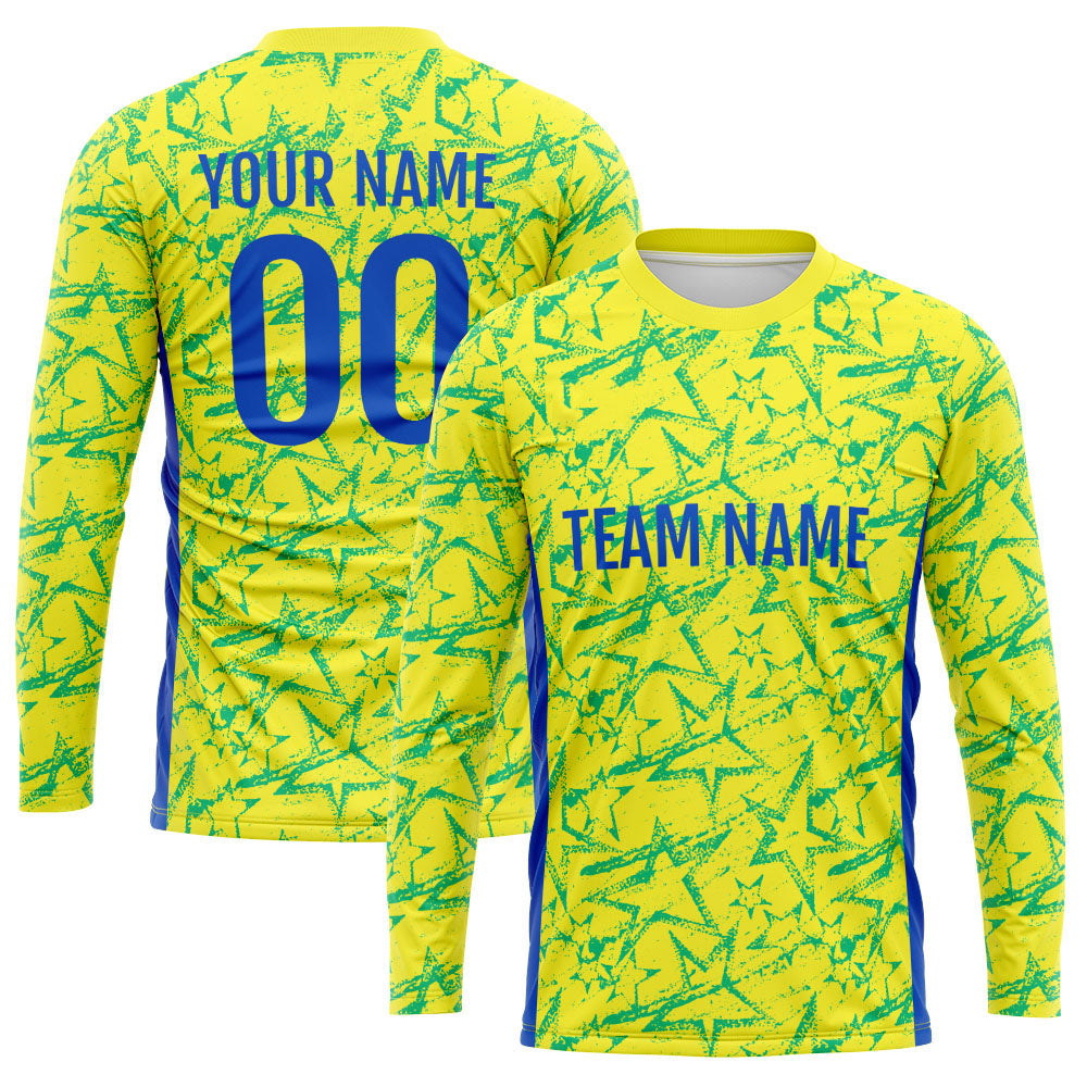 Kundenspezifisches Basketball Fußball Fußball Schießen langes T-Shirt für Erwachsene und Kinder Stern-Gelb