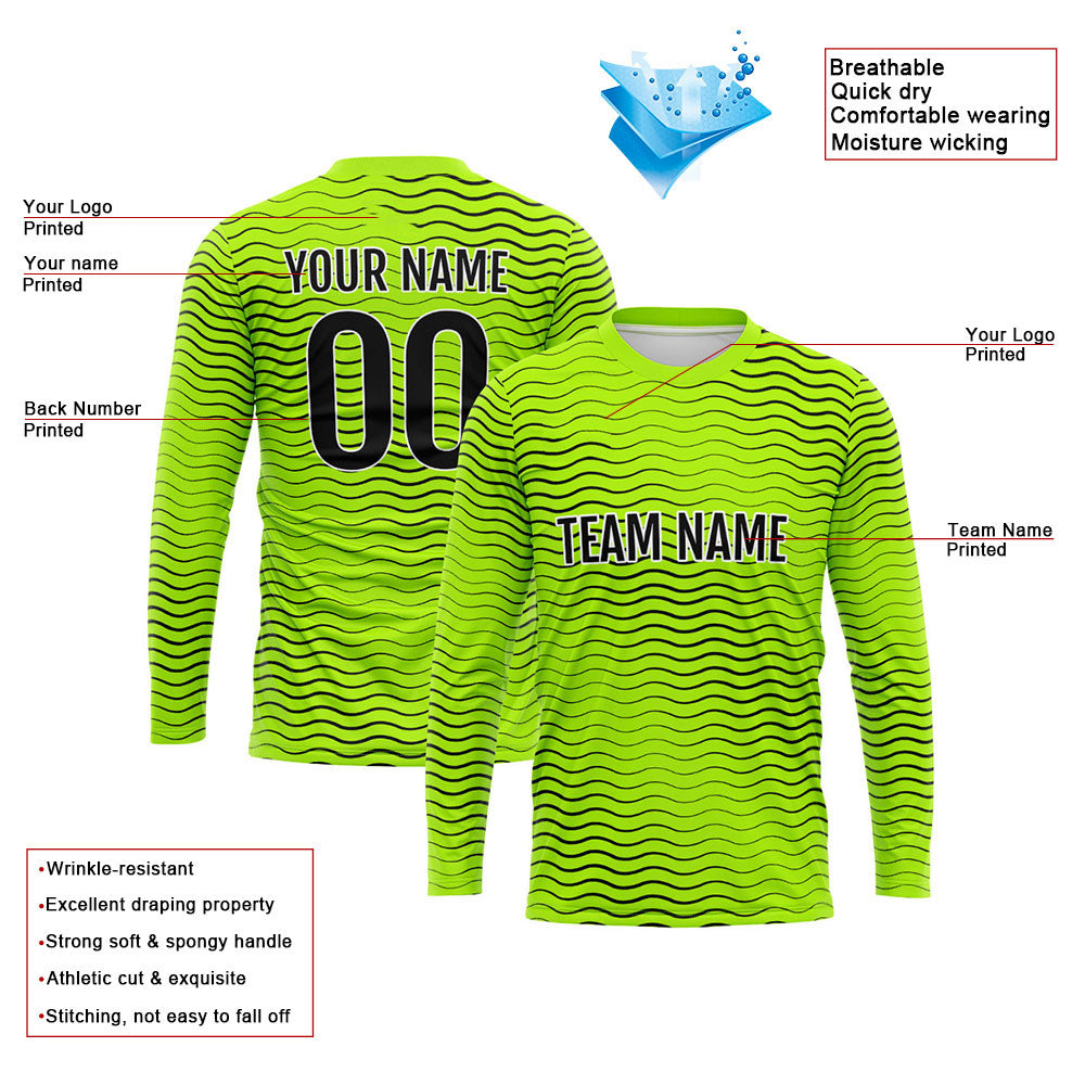 Kundenspezifisches Basketball Fußball Fußball Schießen langes T-Shirt für Erwachsene und Kinder Welle-Neongrün