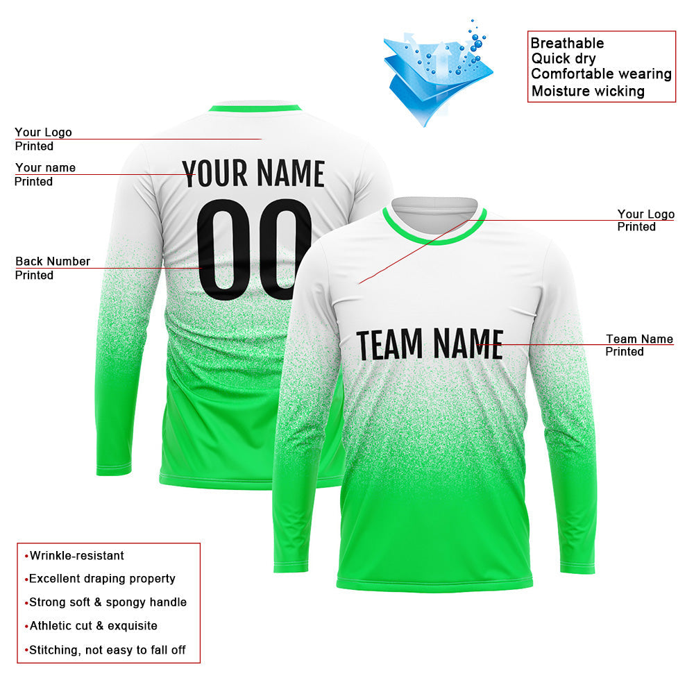 Kundenspezifisches Basketball Fußball Fußball Schießen langes T-Shirt für Erwachsene und Kinder Weiß-Grün