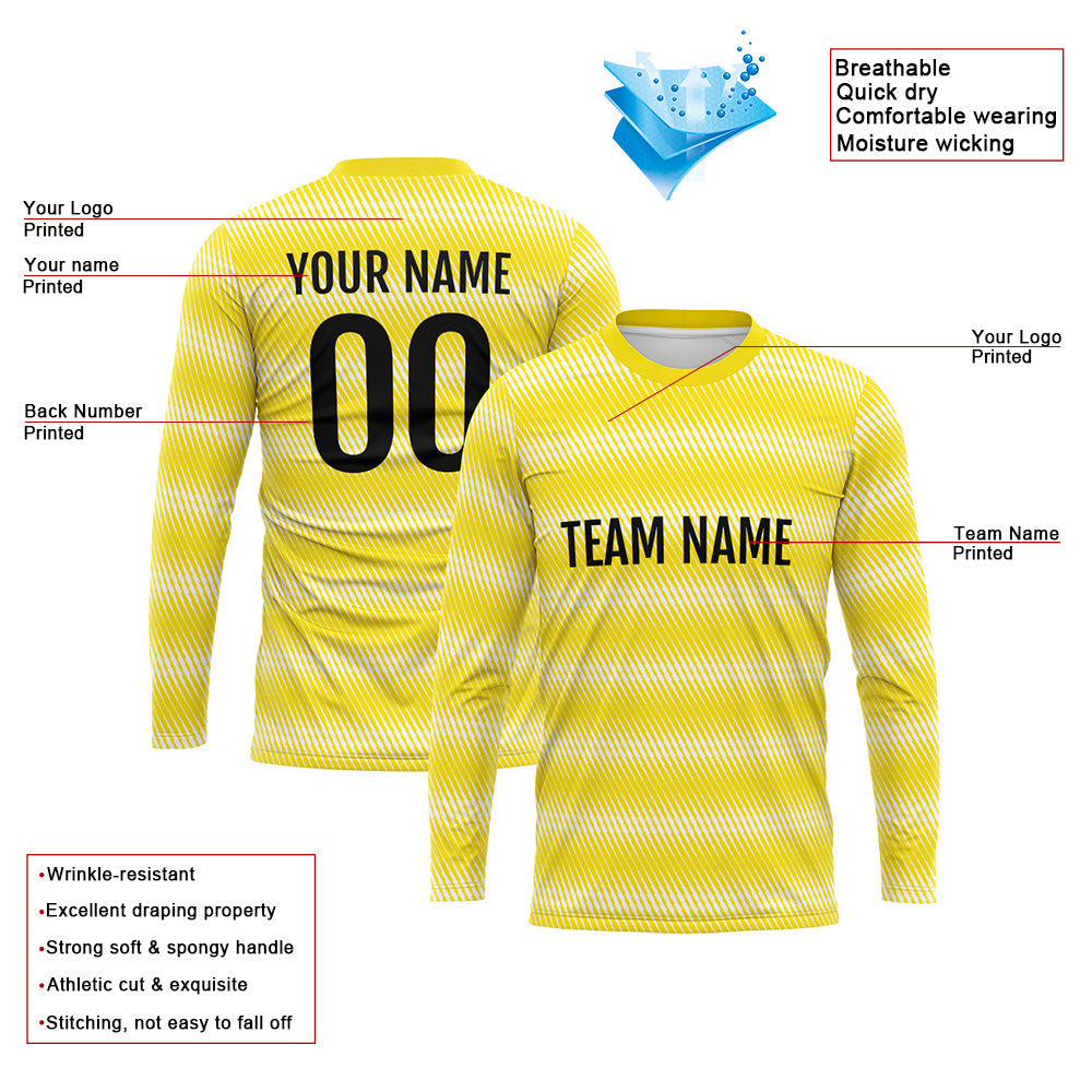 Kundenspezifisches Basketball Fußball Fußball Schießen langes T-Shirt für Erwachsene und Kinder Gelb-Weiß