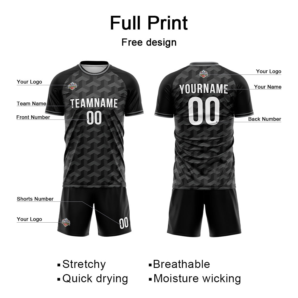 Benutzerdefinierte Fußball Trikots für Männer Frauen Personalisierte Fußball Uniformen für Erwachsene und Kind Schwarz-Dunkel Grau