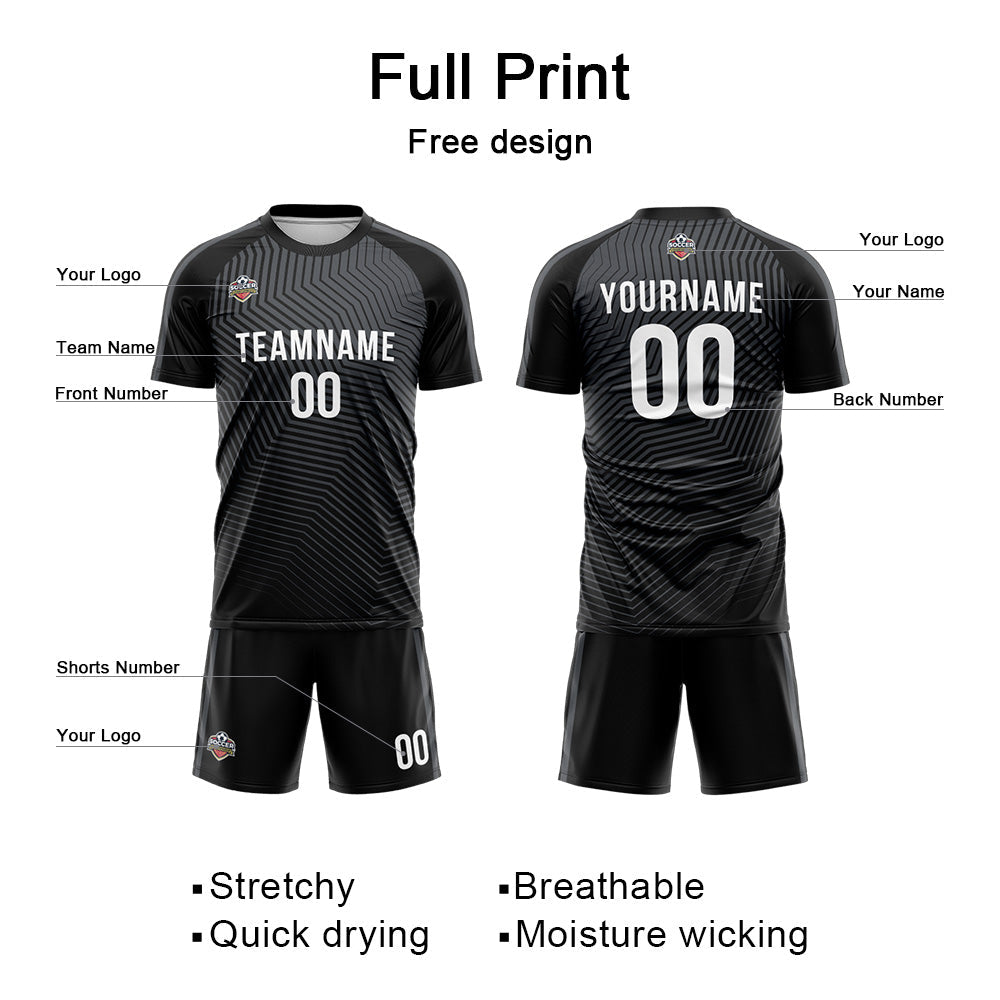 Benutzerdefinierte Fußball Trikots für Männer Frauen Personalisierte Fußball Uniformen für Erwachsene und Kind Schwarz-Grau