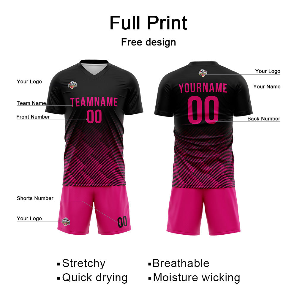 Benutzerdefinierte Fußball Trikots für Männer Frauen Personalisierte Fußball Uniformen für Erwachsene und Kind Schwarz-Hot Rosa