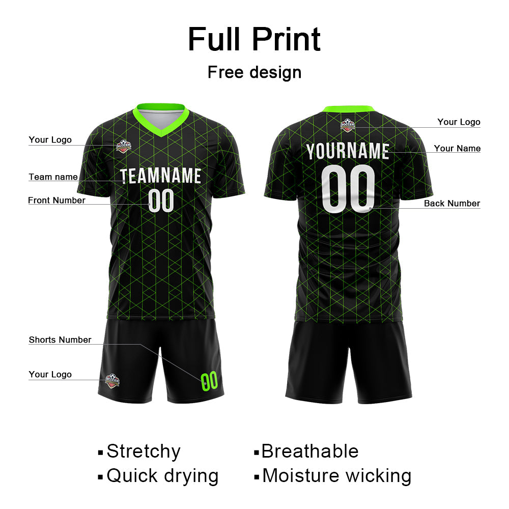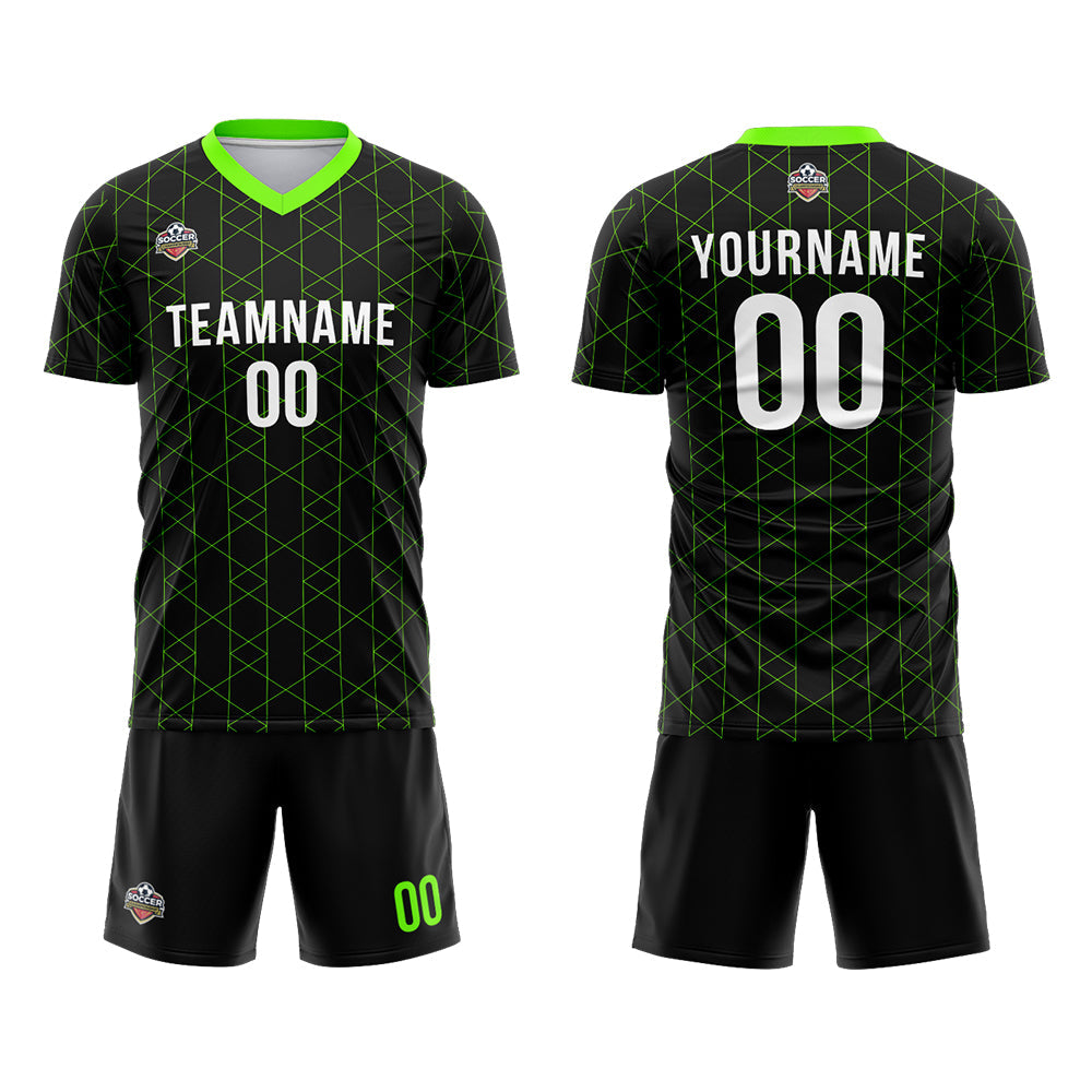 Benutzerdefinierte Fußball Trikots für Männer Frauen Personalisierte Fußball Uniformen für Erwachsene und Kind Schwarz-Neon Grün