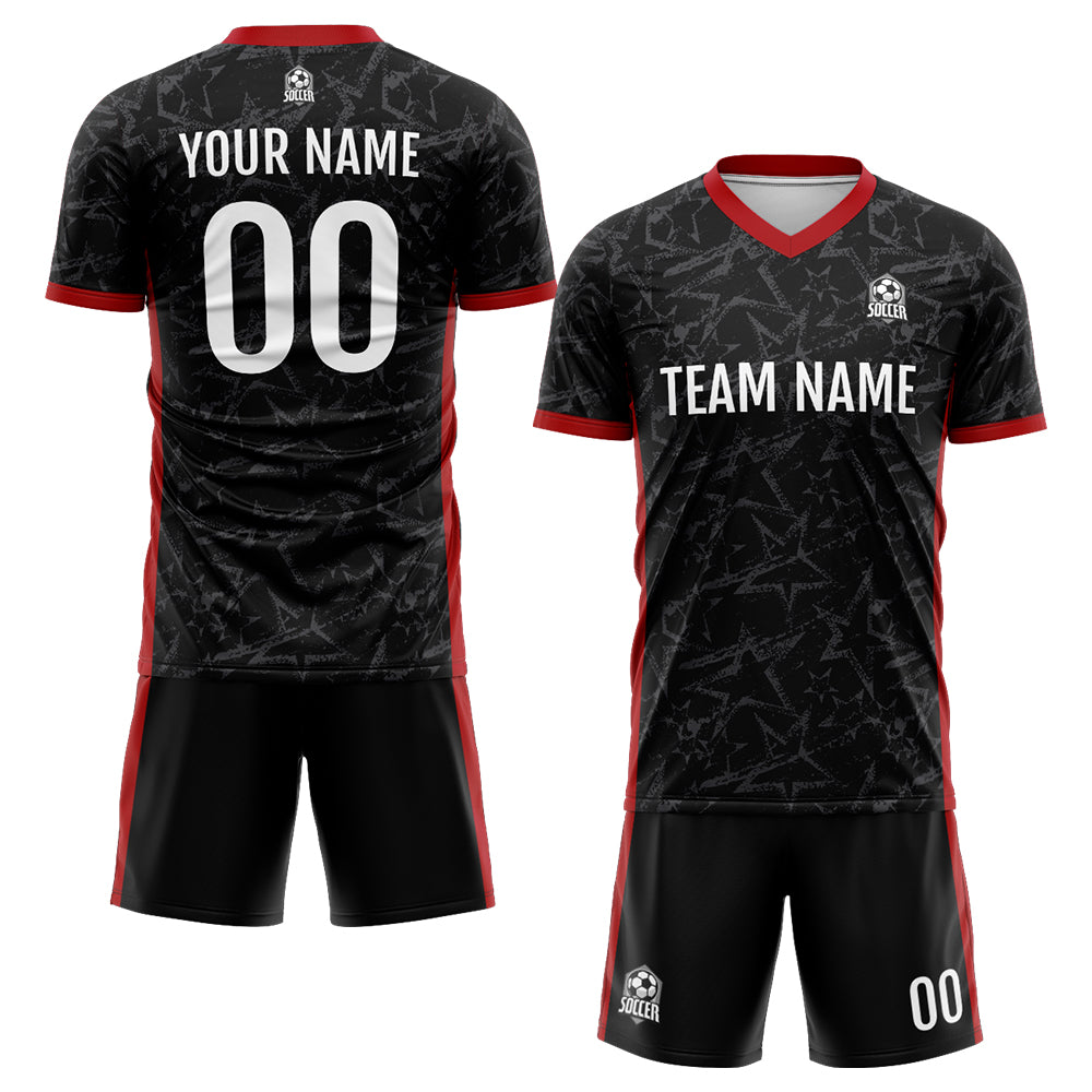 Benutzerdefinierte Fußball Trikots für Männer Frauen Personalisierte Fußball Uniformen für Erwachsene und Kind Schwarz&Rot&Weiß