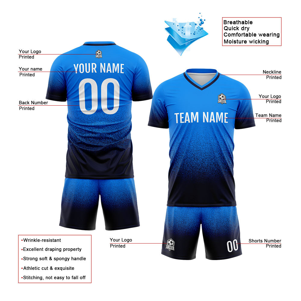 Benutzerdefinierte Fußball Trikots für Männer Frauen Personalisierte Fußball Uniformen für Erwachsene und Kind Blau&Marine