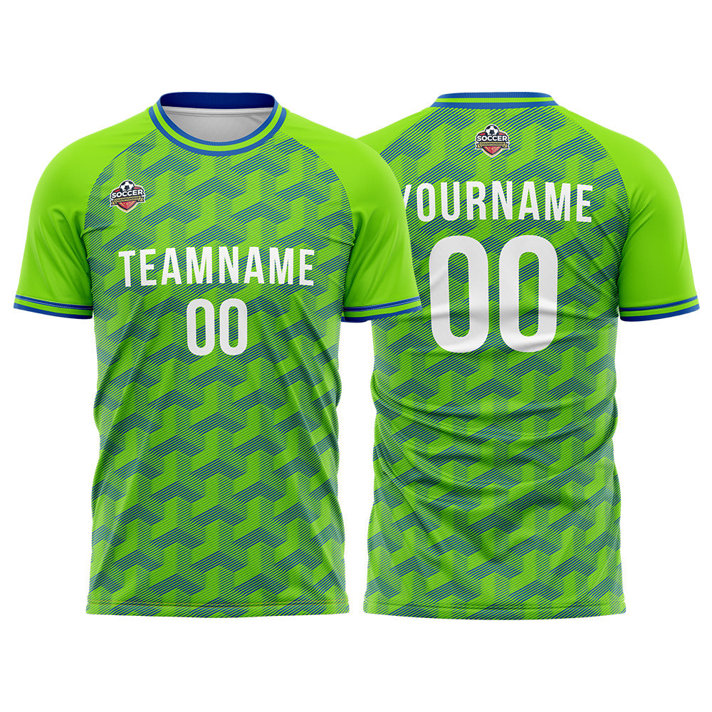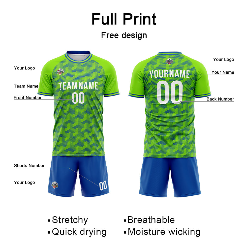 Benutzerdefinierte Fußball Trikots für Männer Frauen Personalisierte Fußball Uniformen für Erwachsene und Kind Grün-Blau