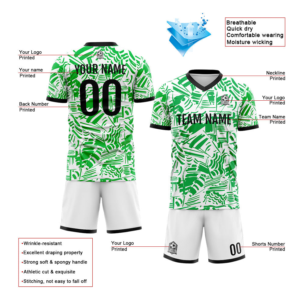 Benutzerdefinierte Fußball Trikots für Männer Frauen Personalisierte Fußball Uniformen für Erwachsene und Kind Grün&Weiß&Schwarz