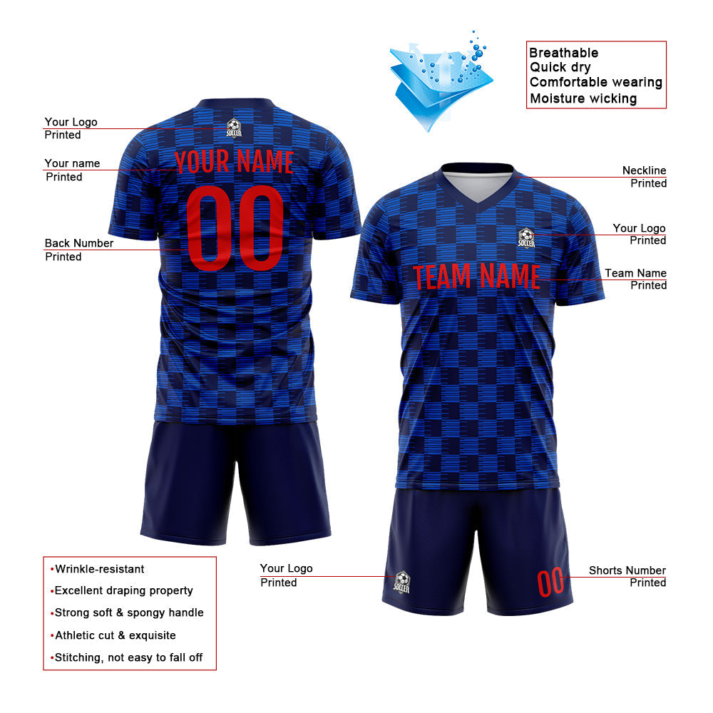 Benutzerdefinierte Fußball Trikots für Männer Frauen Personalisierte Fußball Uniformen für Erwachsene und Kind Hellblau-Marine
