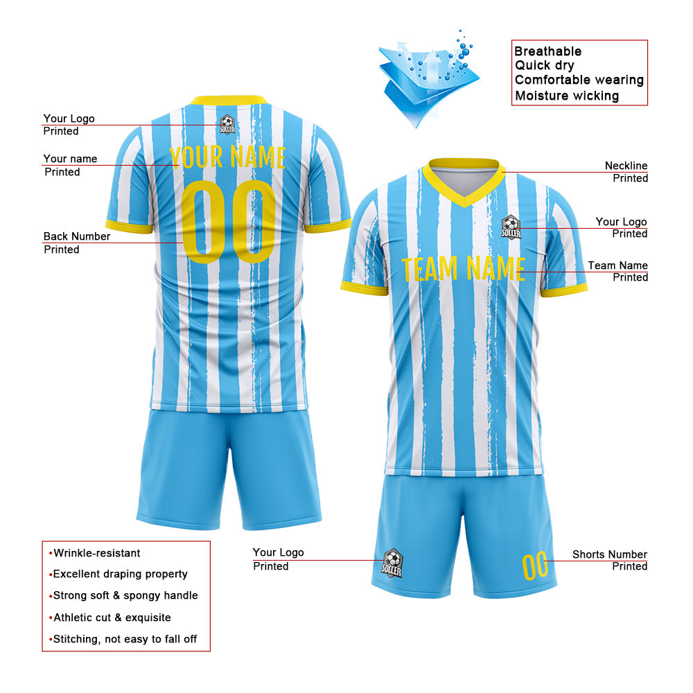 Benutzerdefinierte Fußball Trikots für Männer Frauen Personalisierte Fußball Uniformen für Erwachsene und Kind Licht Blau-Weiß