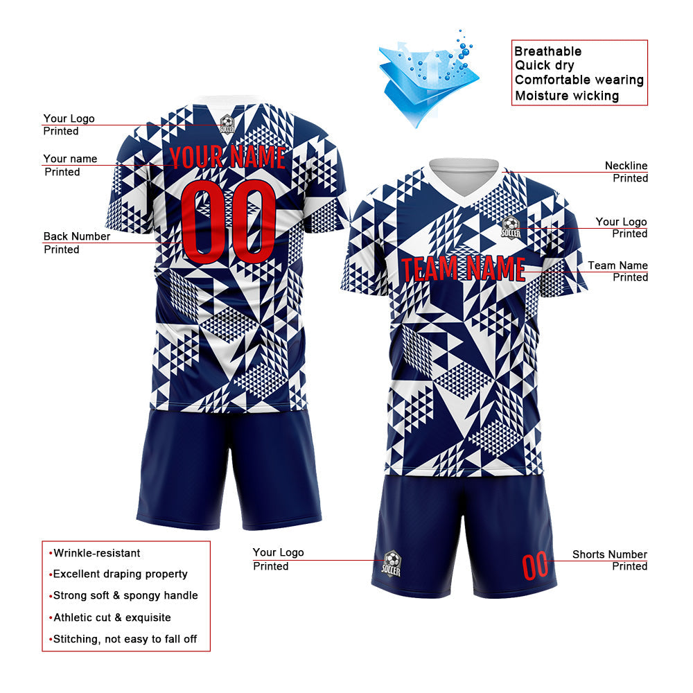 Benutzerdefinierte Fußball Trikots für Männer Frauen Personalisierte Fußball Uniformen für Erwachsene und Kind Marine-Weiß