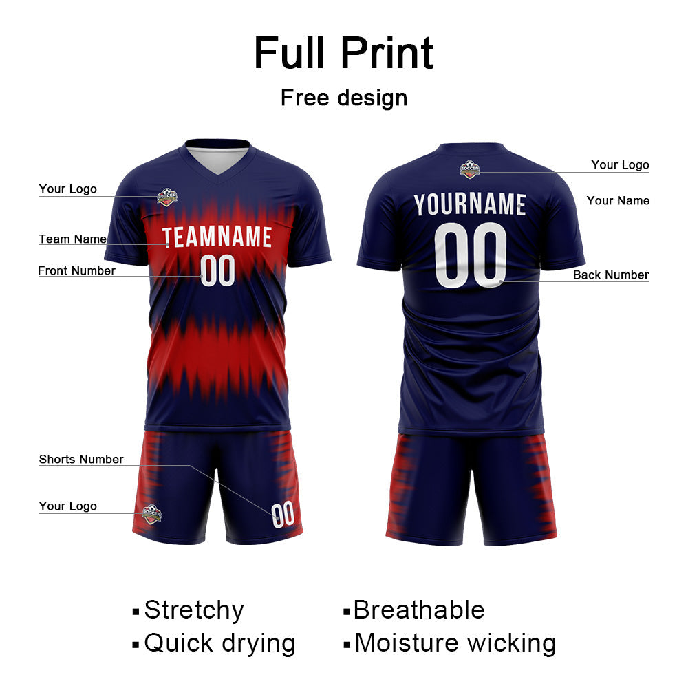 Benutzerdefinierte Fußball Trikots für Männer Frauen Personalisierte Fußball Uniformen für Erwachsene und Kind Marine-Rot