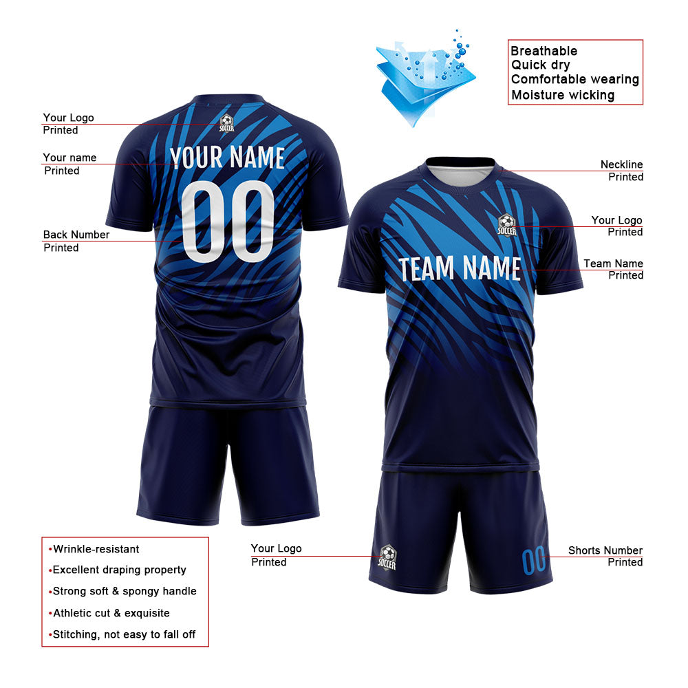 Benutzerdefinierte Fußball Trikots für Männer Frauen Personalisierte Fußball Uniformen für Erwachsene und Kind Marine&Royal