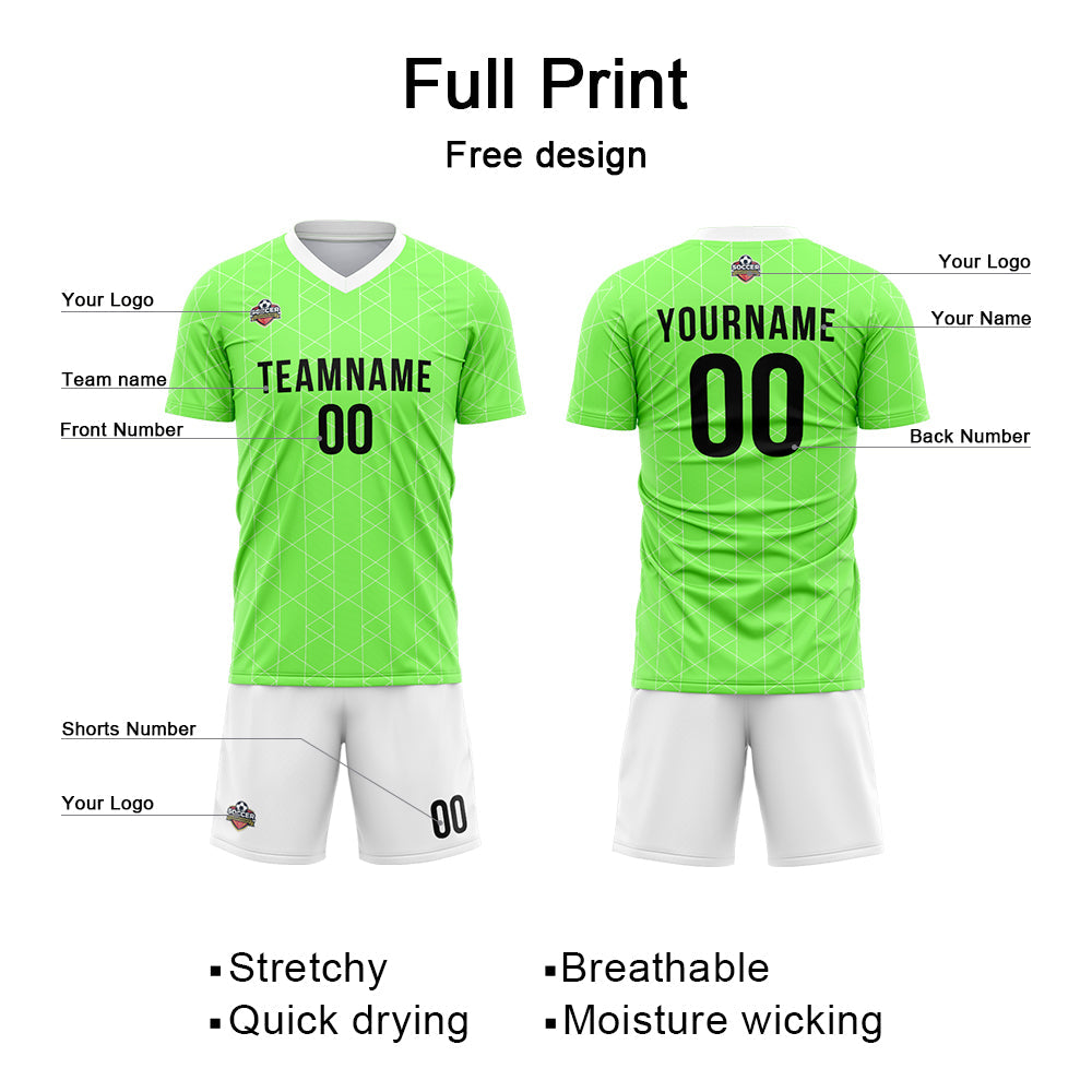 Benutzerdefinierte Fußball Trikots für Männer Frauen Personalisierte Fußball Uniformen für Erwachsene und Kind Neon Grün-Weiß